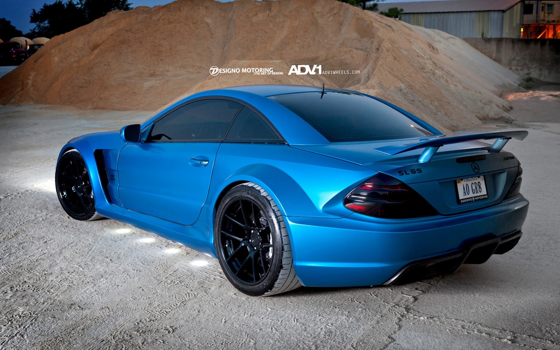 Blauer Sportwagen steht