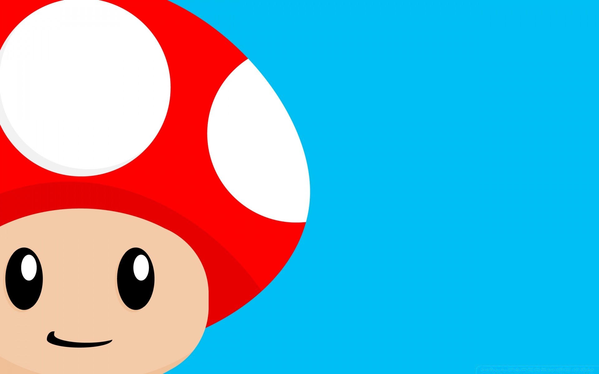 Abbildung mit einem Pilz von Mario auf einem Desktop-Hintergrund