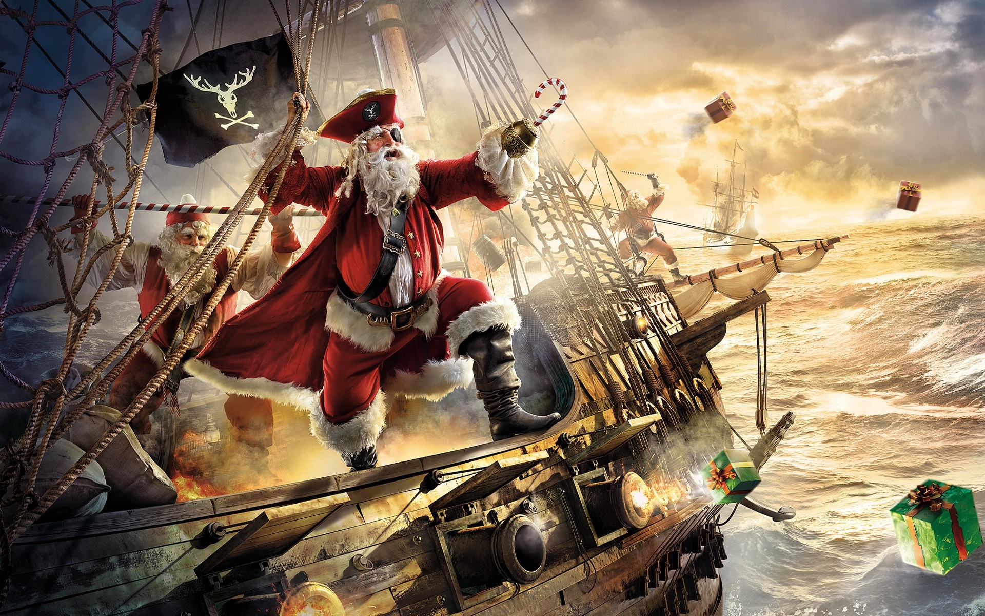 Der Weihnachtsmann als Pirat auf einem Schiff