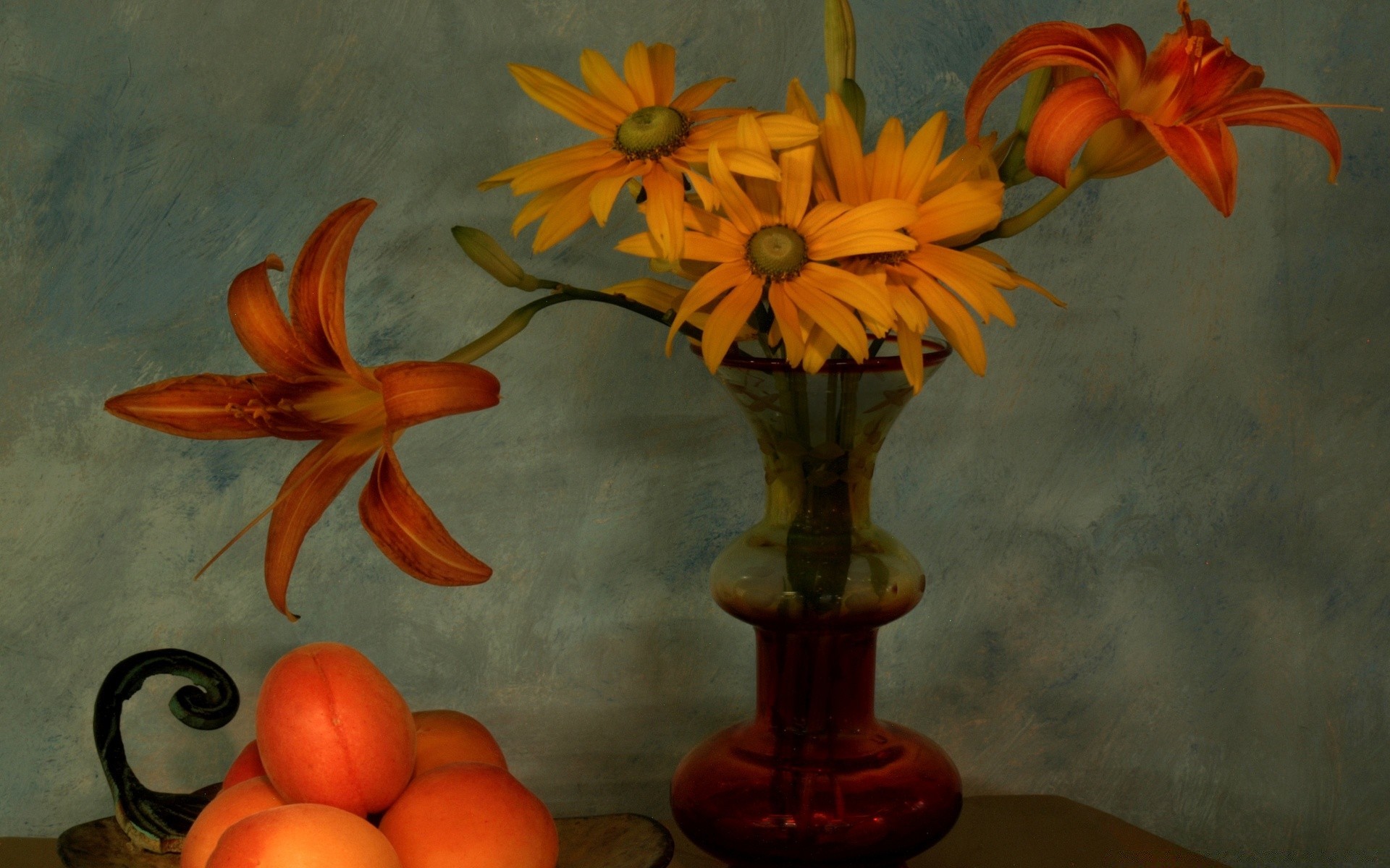 Rote Freesien und farbige Perlen