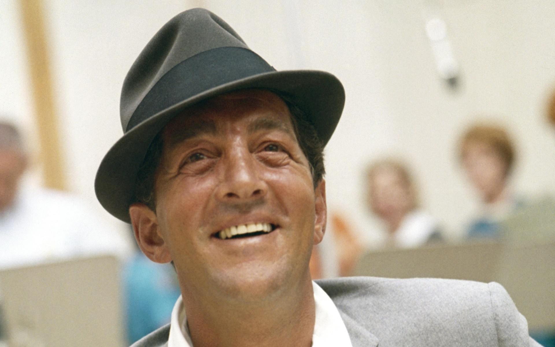 Foto des schauspielers auf dem hintergrund von gläsern im restaurantFoto des Schauspielers auf dem Hintergrund von Gläsern im Restaurant