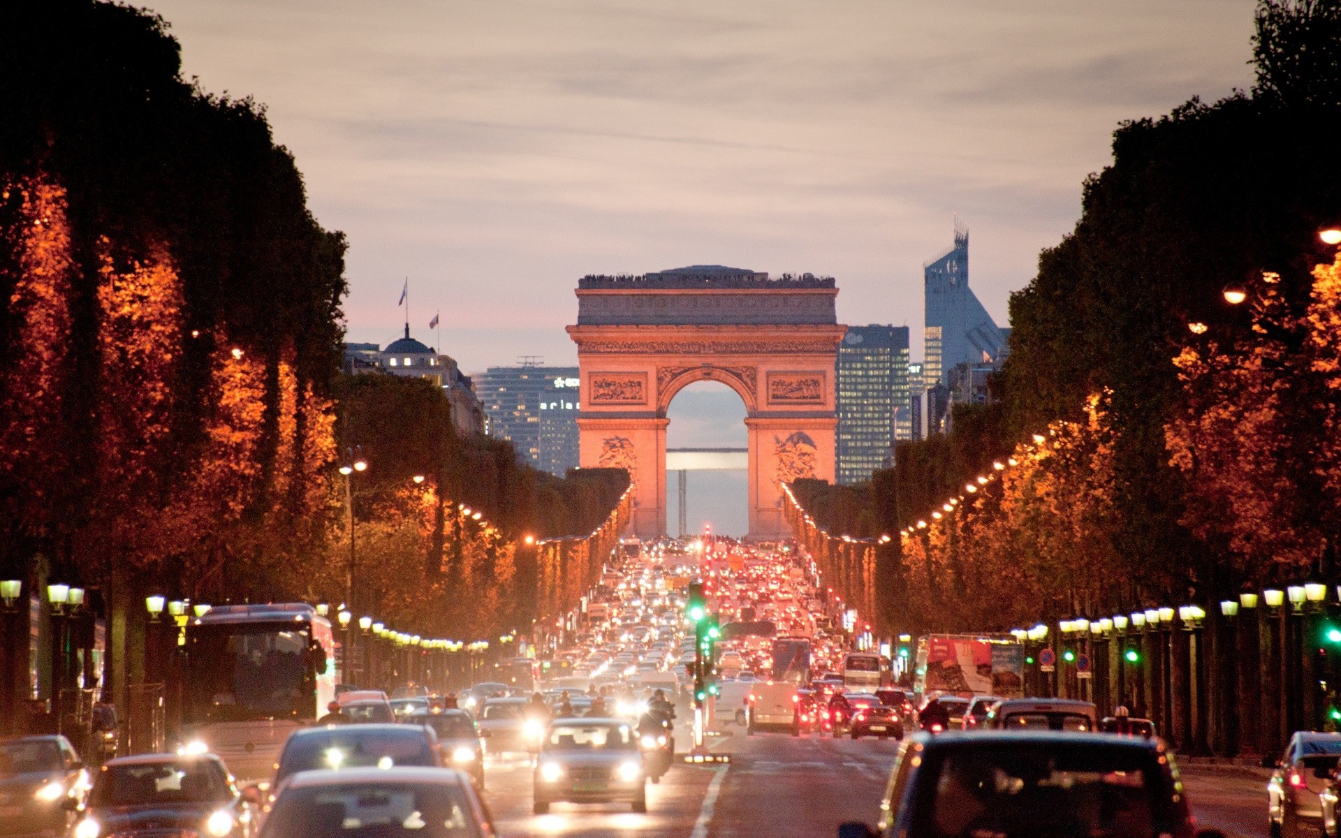 Die Lichter der Nachtstadt und der hohen Wolkenkratzer