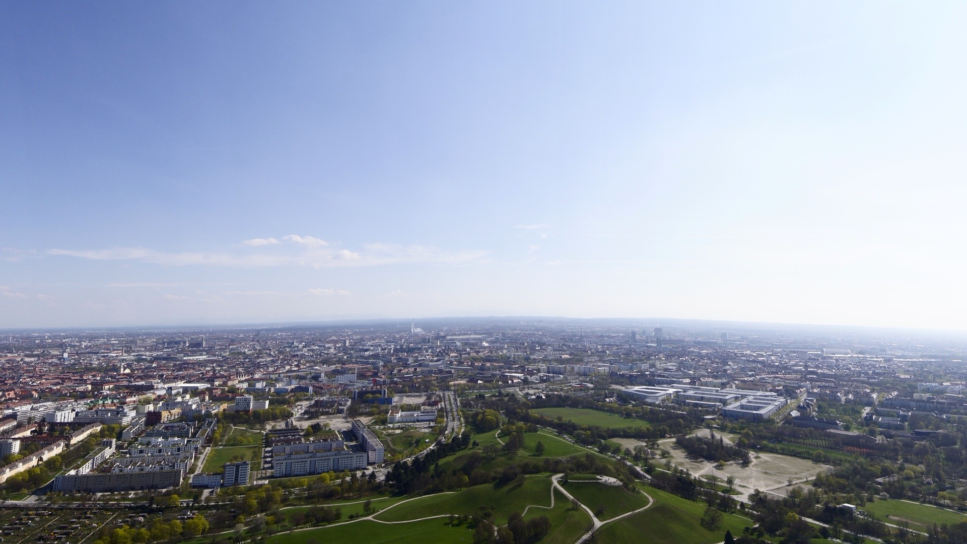 Blick auf die Morgenstadt von oben. Reise durch Europa