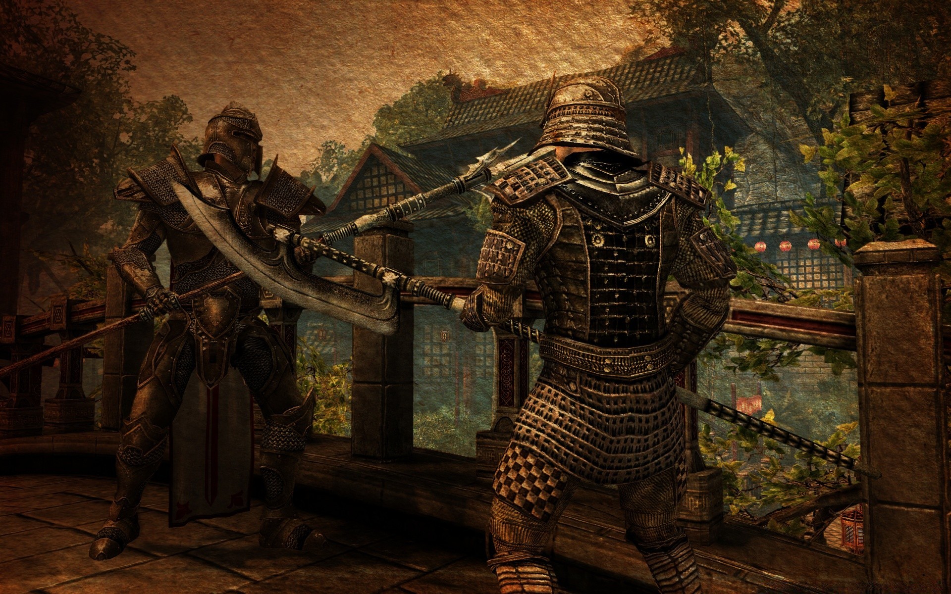 Kampf zweier Krieger auf der Straße