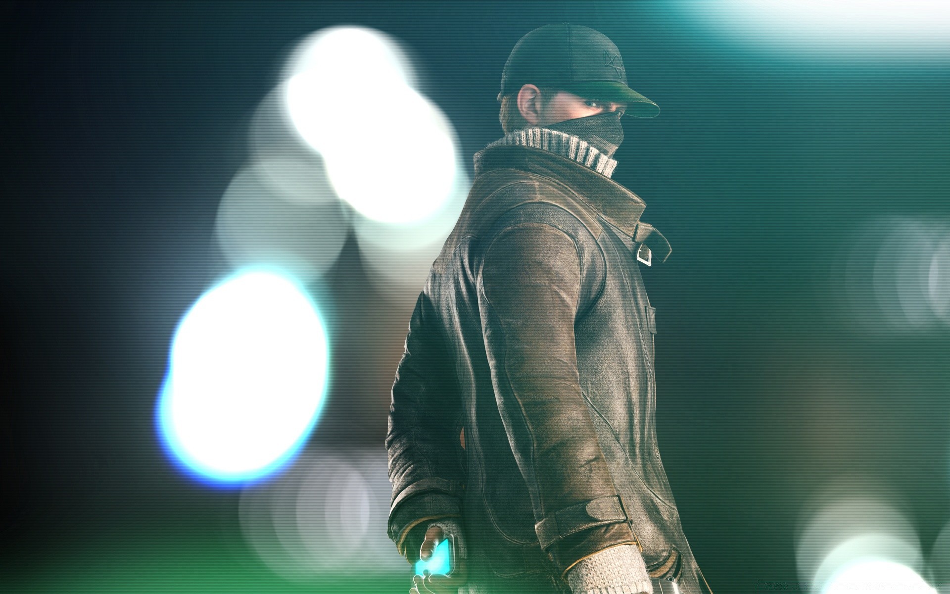 Maskierter Mann und bekleidet versteckt sein Handy hinter seinem Rücken