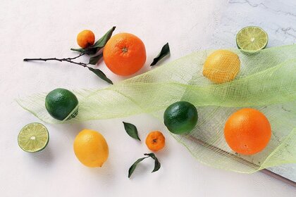 Zitrus-Stillleben mit Mandarinenzweig