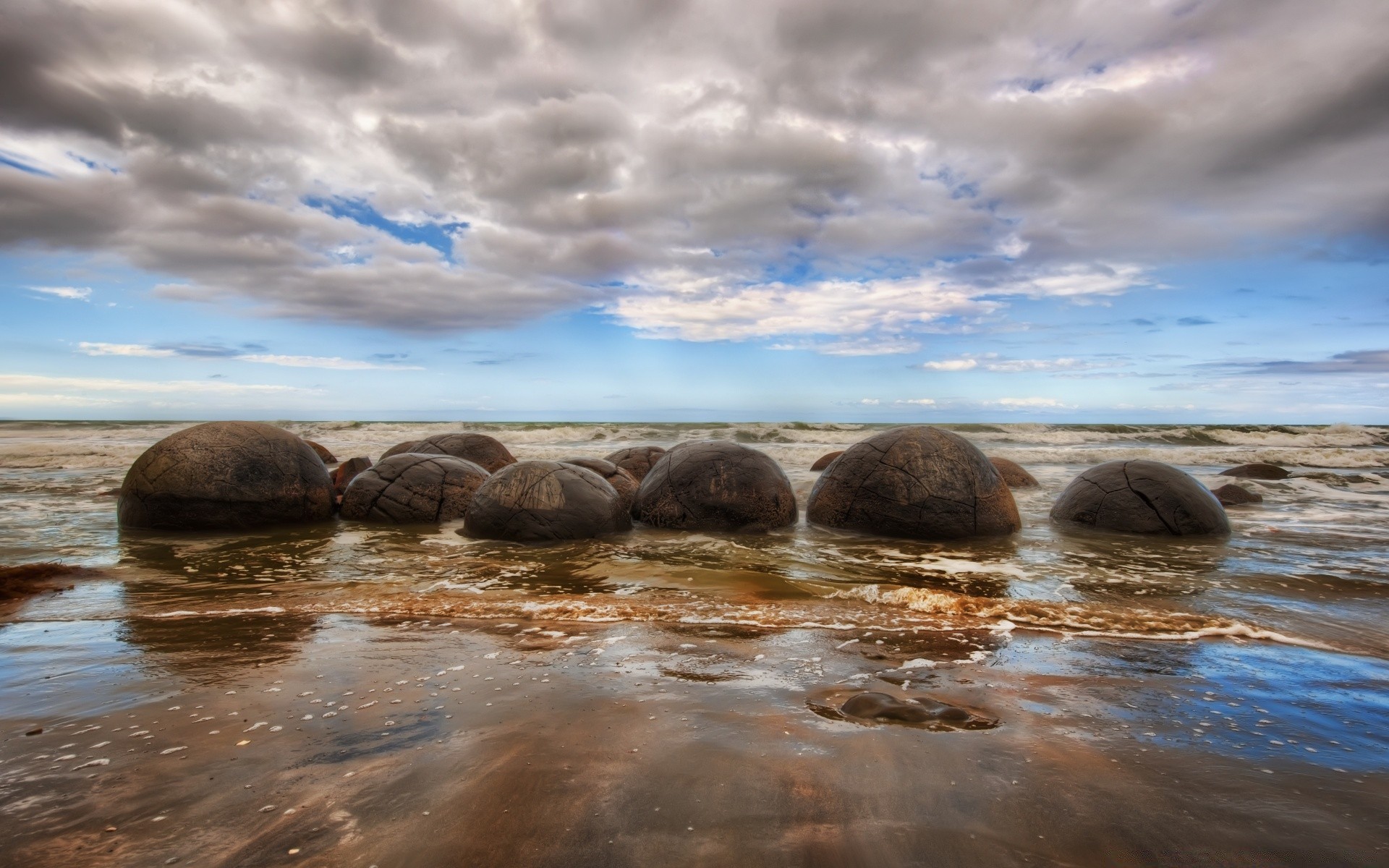 Steine, die am Sandstrand liegen