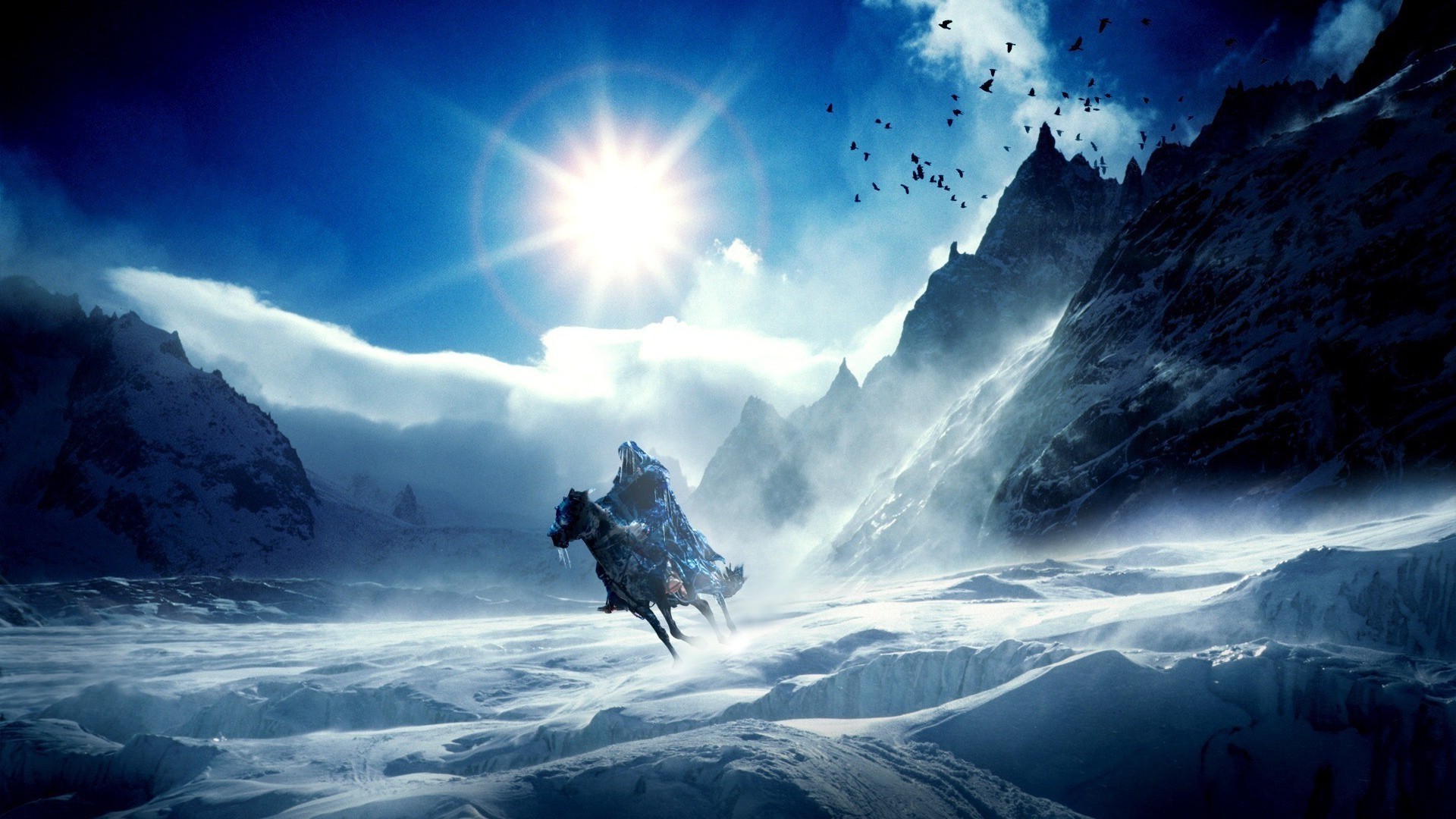 Die Reise eines einsamen Kriegers durch Berge und Schnee