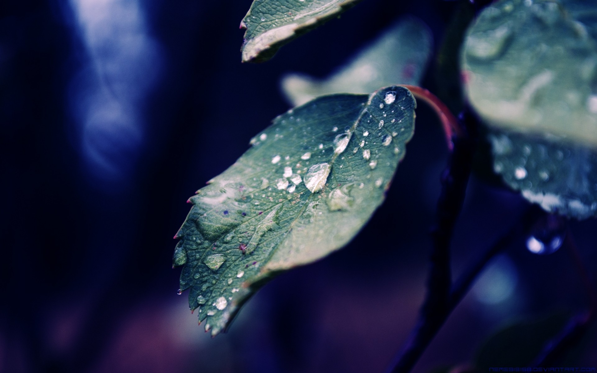 Makro-Zweige der Pflanze in Blau