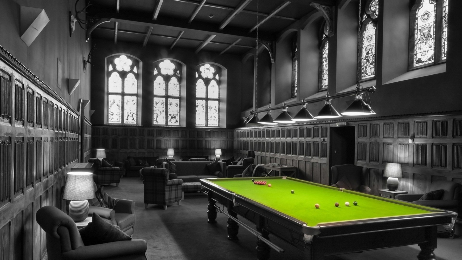 Im Inneren des Hauses stehen ein Kamin an den Seiten große Kerzenständer mit brennenden Kerzen, Türen auf beiden Seiten, Sofas mit Mustern dazwischen ein roter Teppich mit Präoboladaniem
