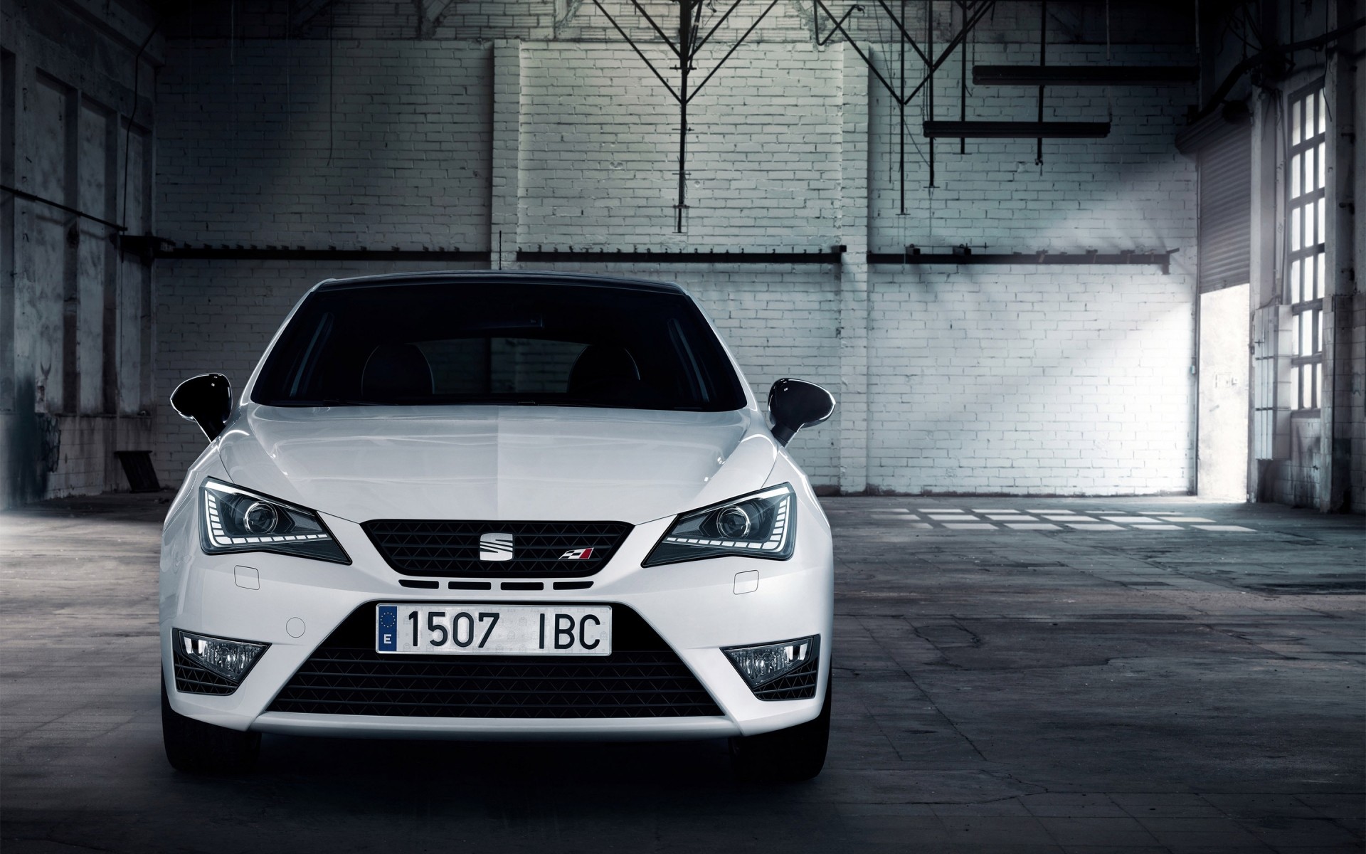 Ein roter Rennwagen steht drinnen unter den Lampen