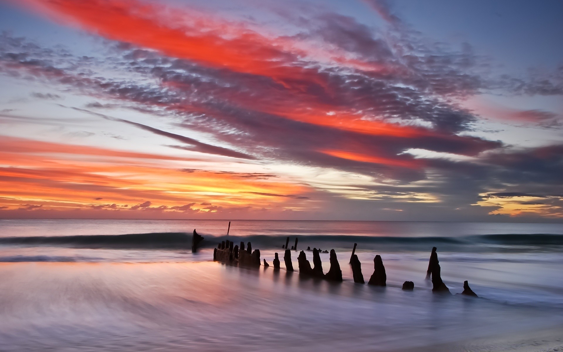 Dunkle Silhouetten im Wasser bei Sonnenuntergang