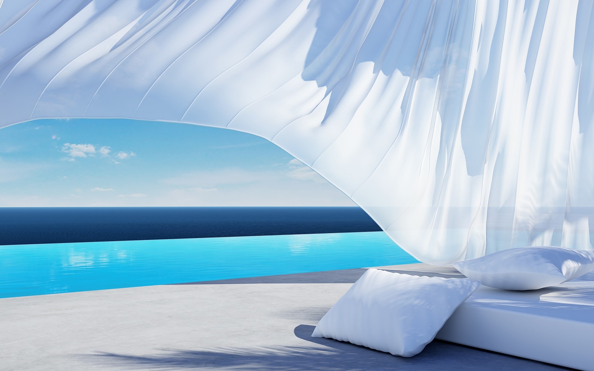 Zeichnung von Baby Kleinkind am Himmel und über dem Wasser