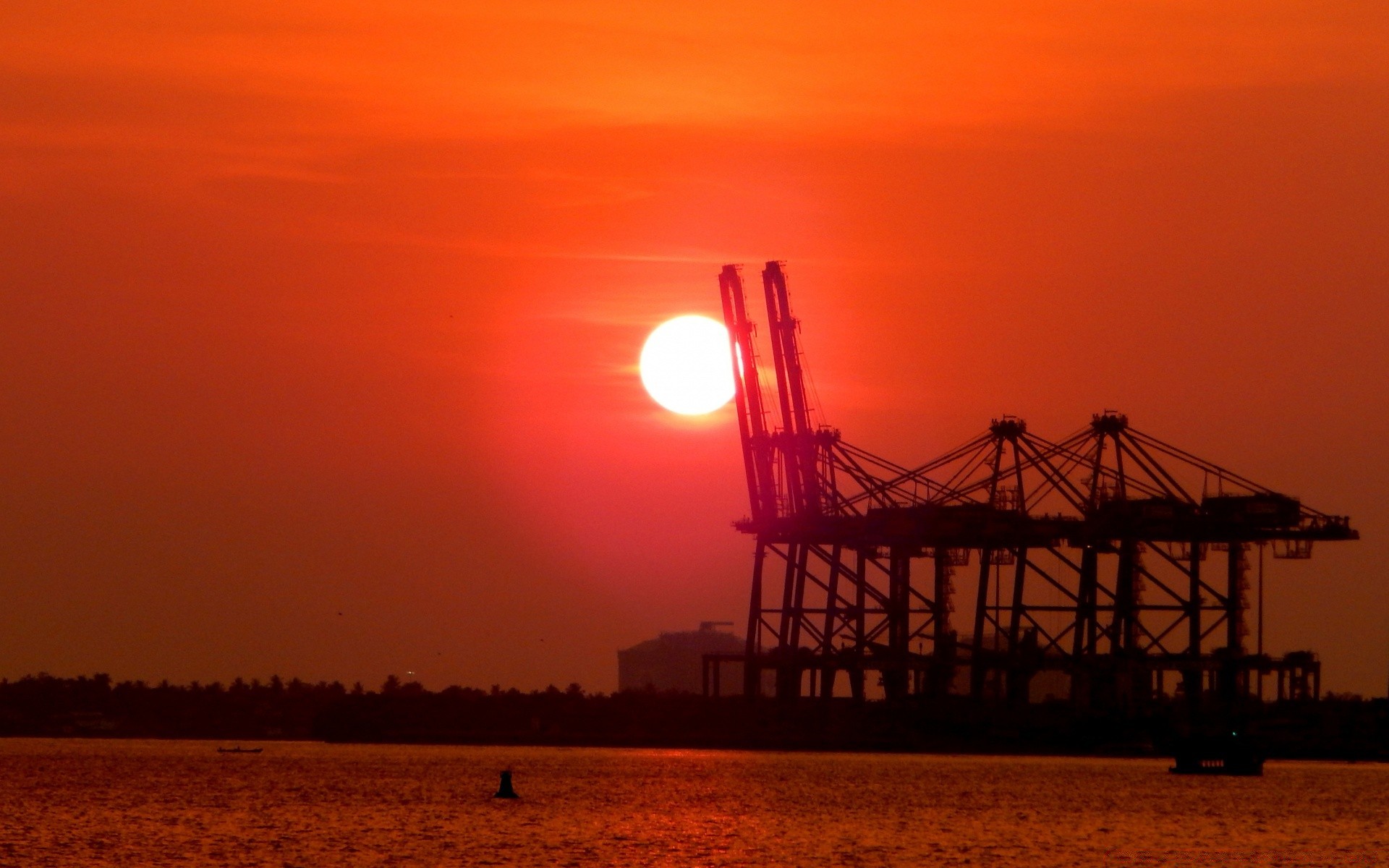 Reise durch asien, sonnenuntergang himmel auf der straßeReise durch Asien, Sonnenuntergang Himmel auf der Straße
