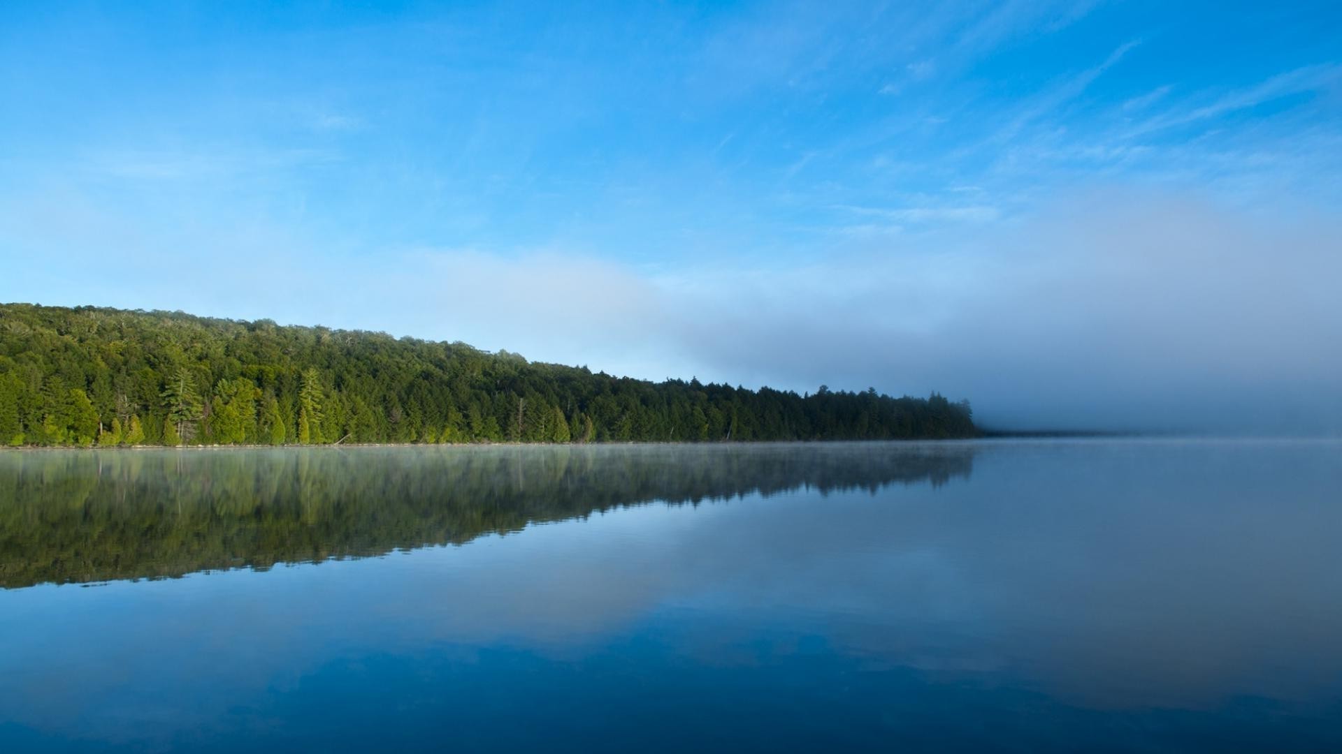 Bewölkter Himmel. Sonnenuntergang auf dem Wasser
