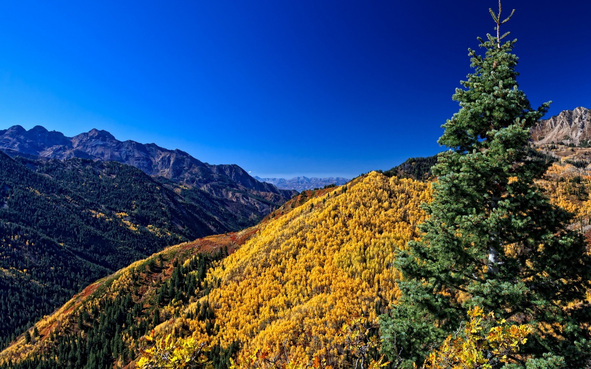 Berggipfel bei strahlendem sonnenschein und blauem himmelBerggipfel bei strahlendem Sonnenschein und blauem Himmel