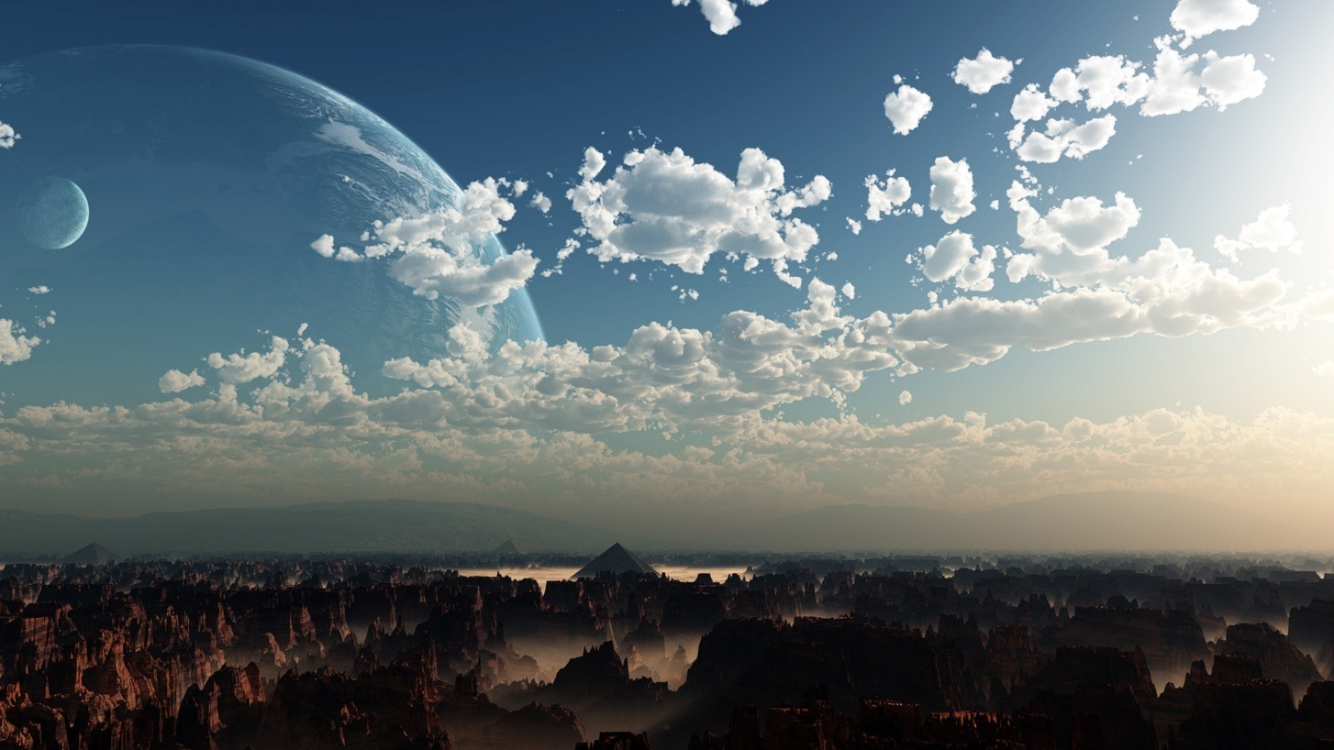 Landschaft mit sternwarte vor dem hintergrund von bergen und himmelLandschaft mit Sternwarte vor dem Hintergrund von Bergen und Himmel