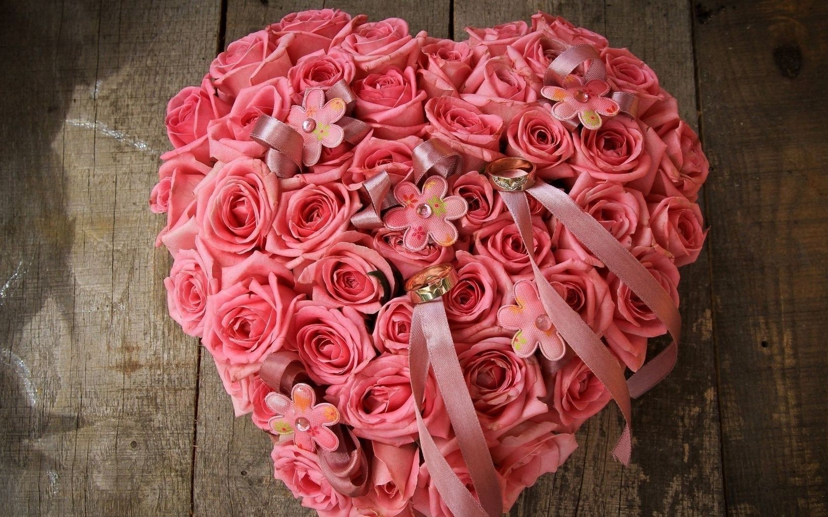 Eine rosa Kerze, die von Herzen umgeben ist. rosa Rosen