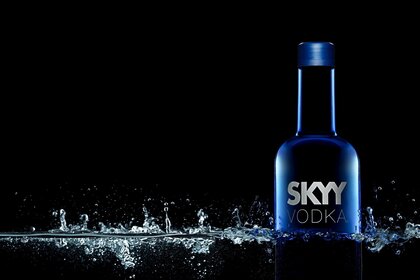 Kleines Dorf in einer Flasche in der Mitte des Meeres