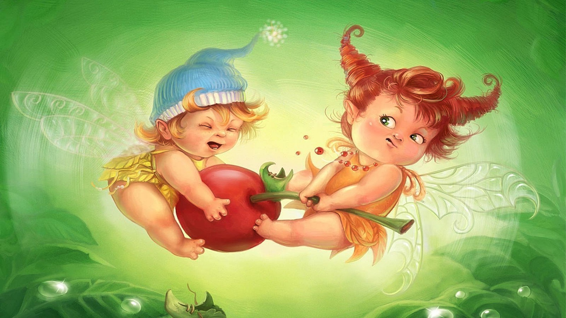 Dde kleine Fee mit einem Skandal eine Kirsche teilen