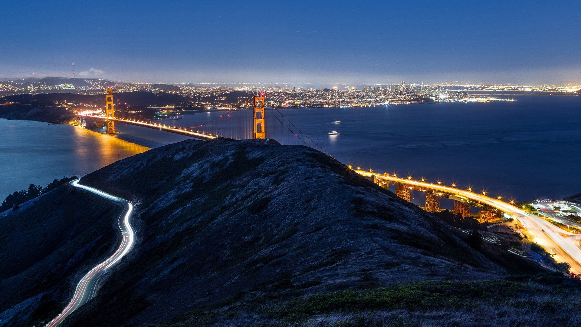 Nachtstadt. Brücke am Wasser