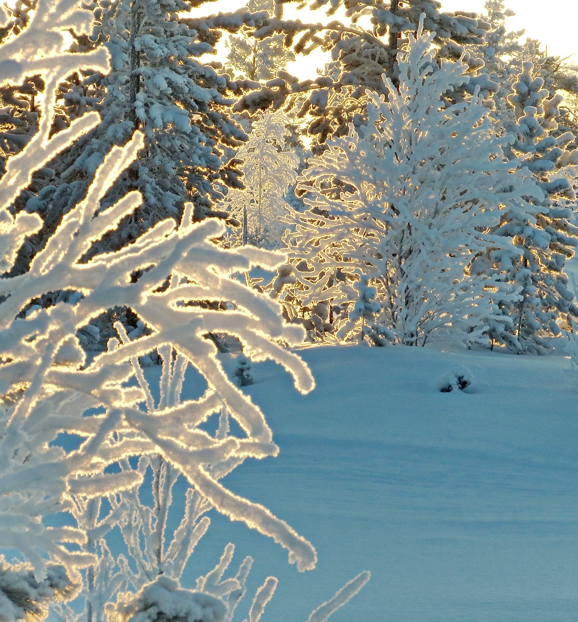 Die Sonnenstrahlen werden durch die Antki mit Schnee und Eis bedeckt