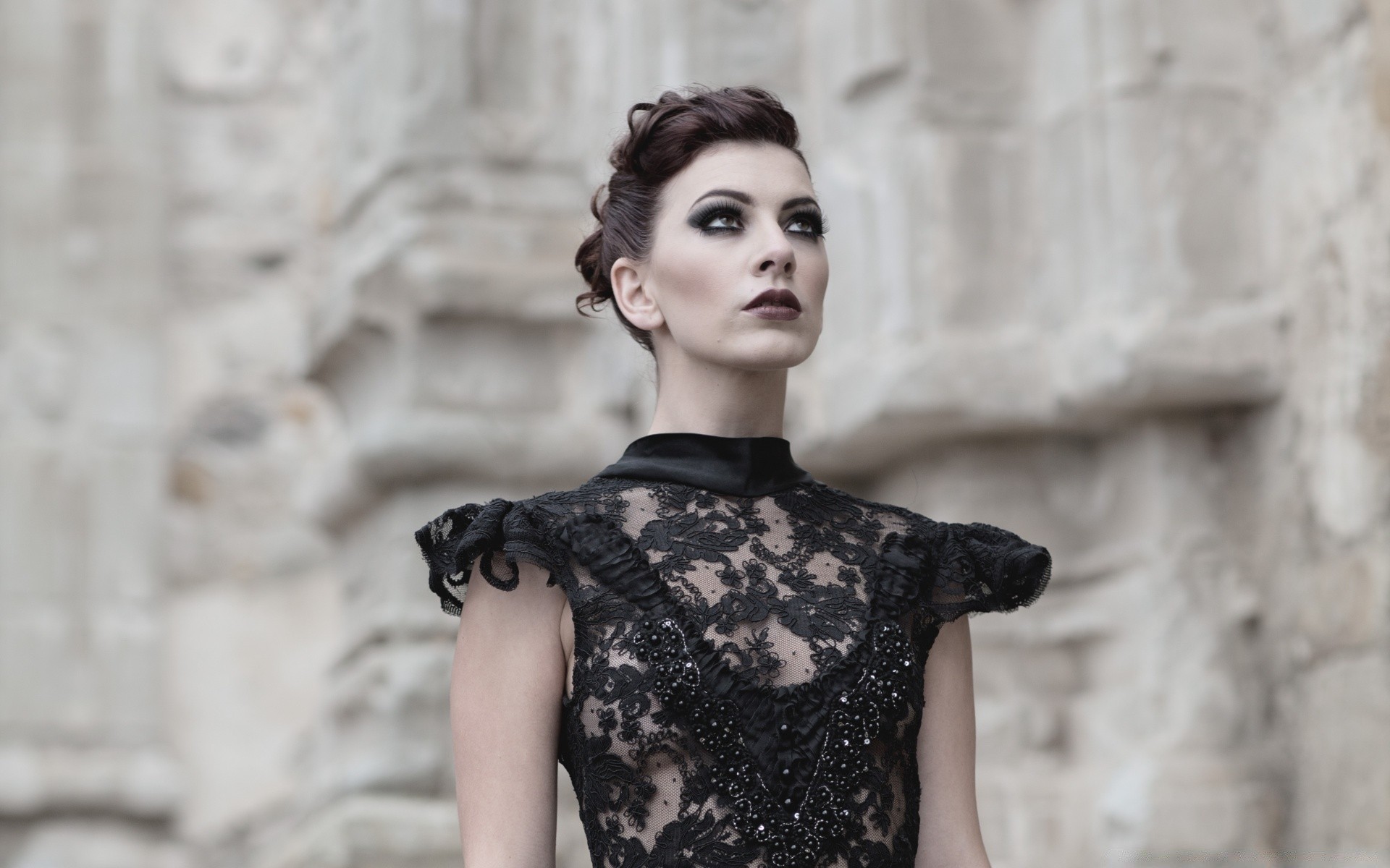 Brünette in weißen Strumpfhosen auf einem Burgunder Hintergrund