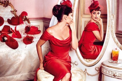 Frau im roten Kleid im Schnee
