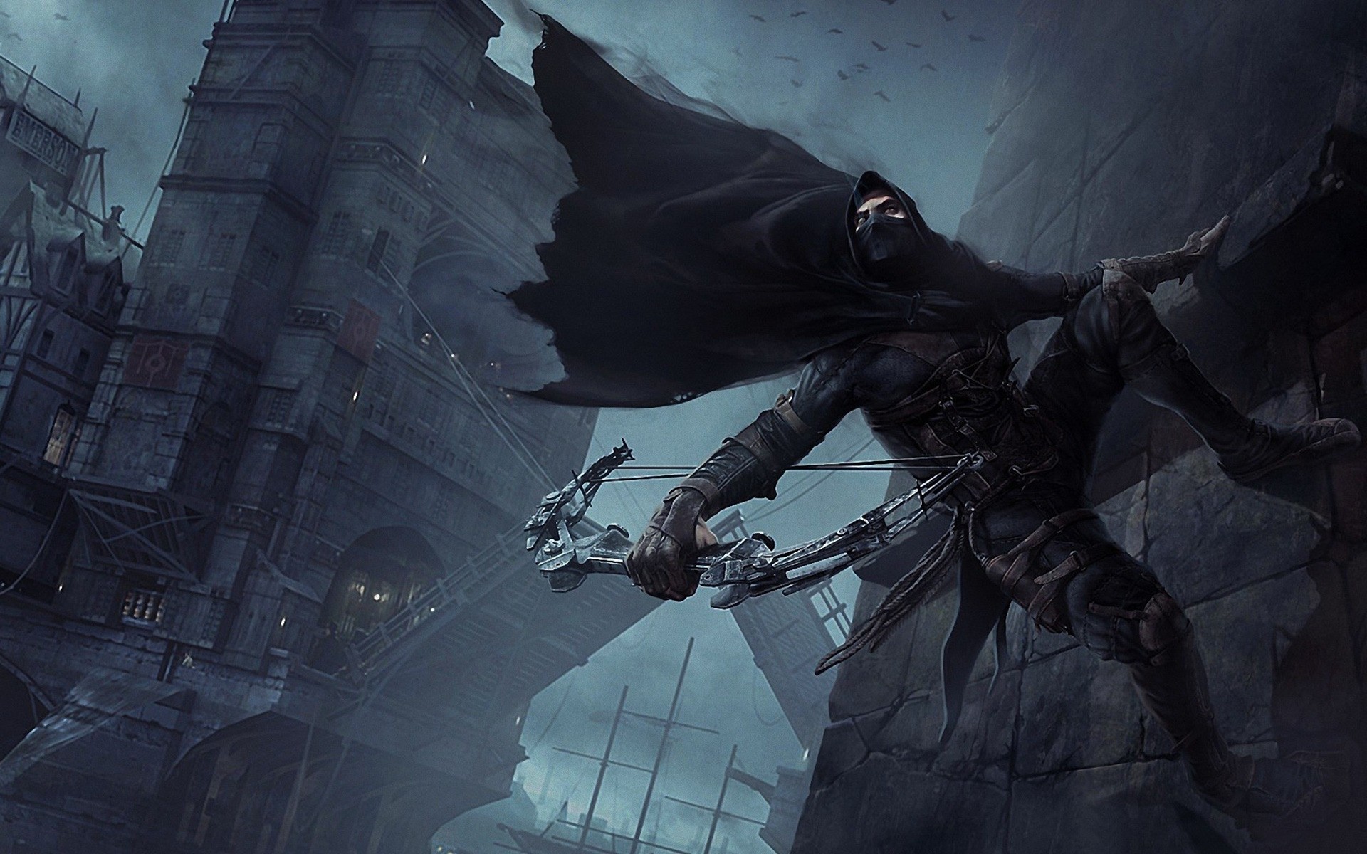 Assassin's creed-Charakter steht in weißer Kleidung auf rotem Grund in der Mitte