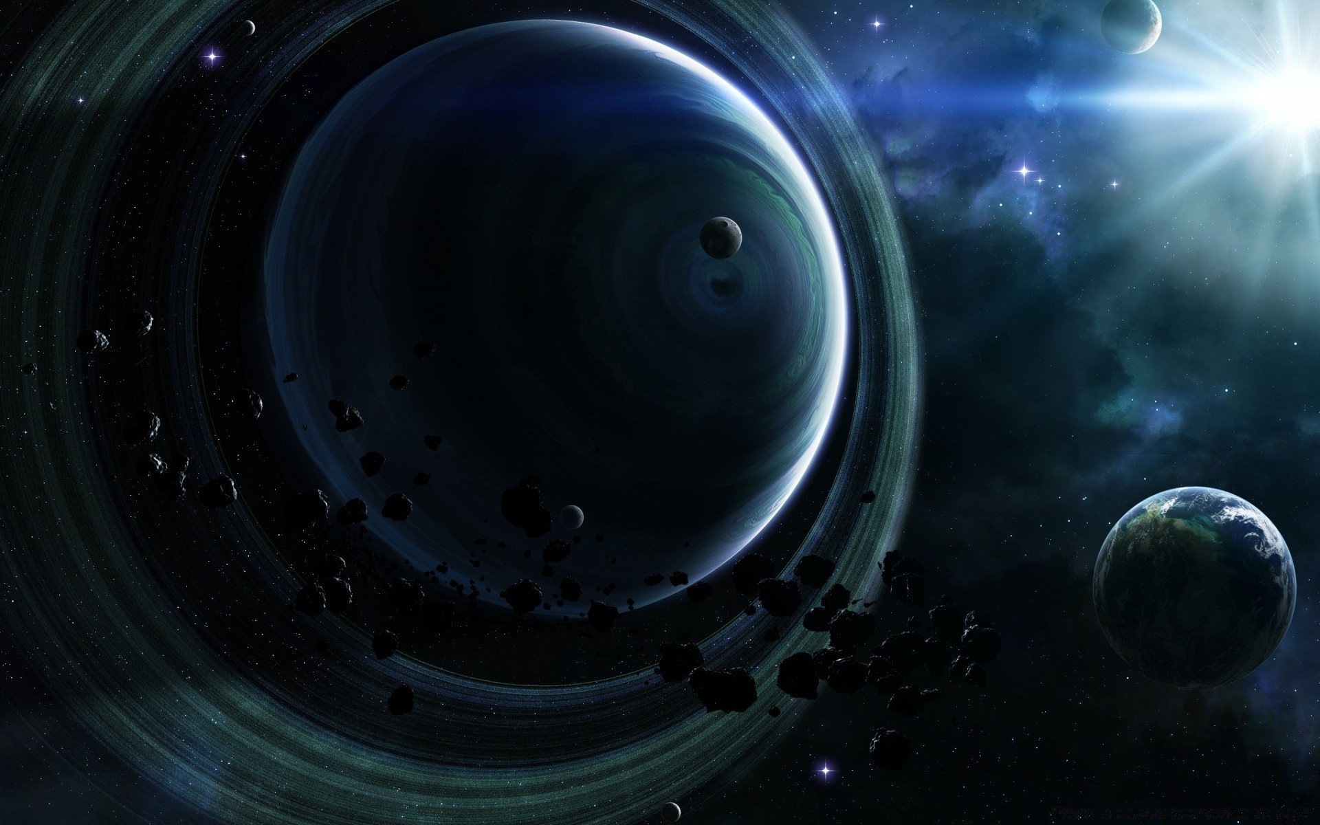 Viele verschiedene planeten vor dem hintergrund eines sterns