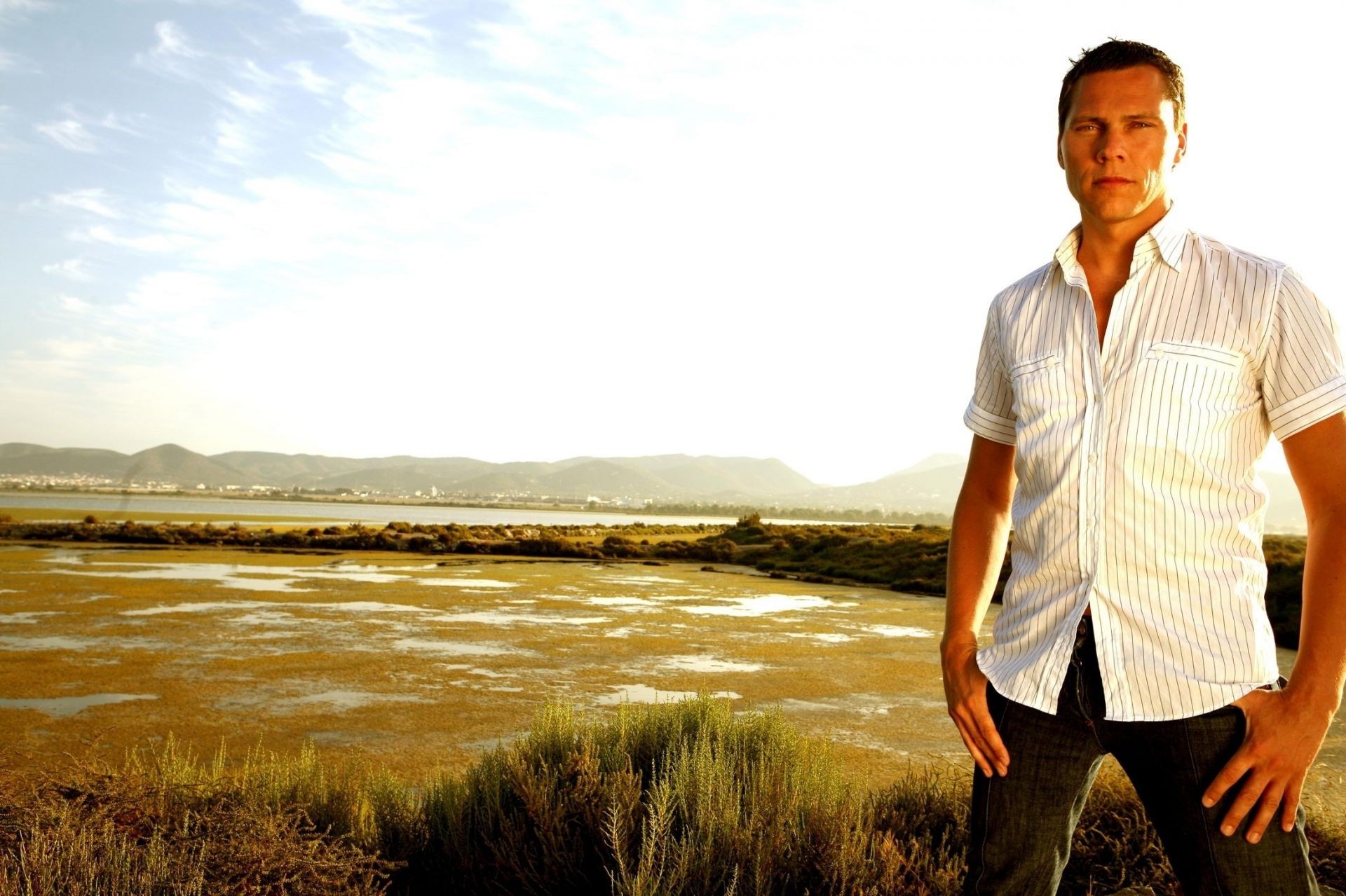 Männliche erholung unter freiem himmel am wasser