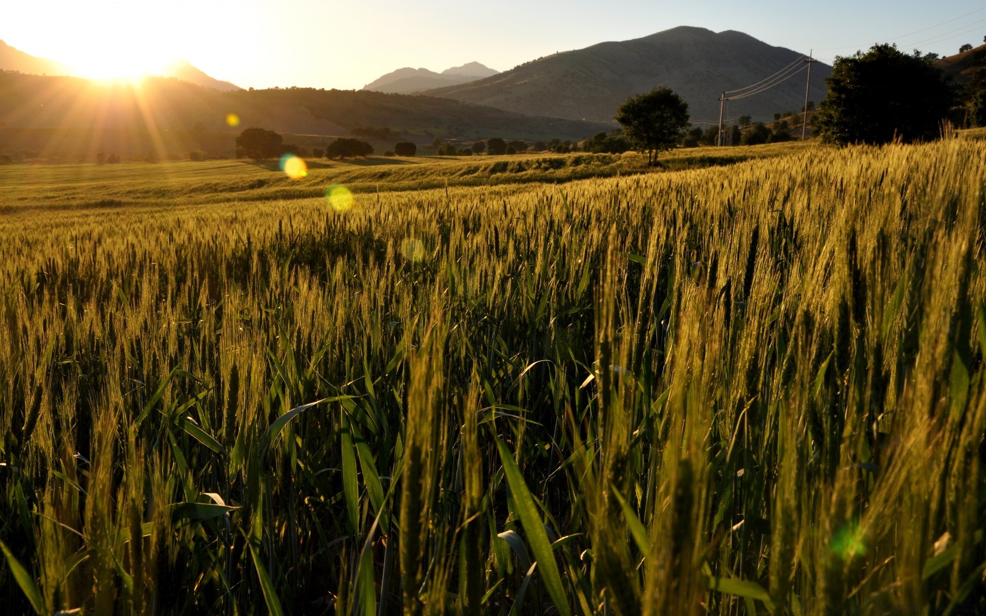 Ein rustikales Feld. Weizenfeldlandschaft mit Stroh