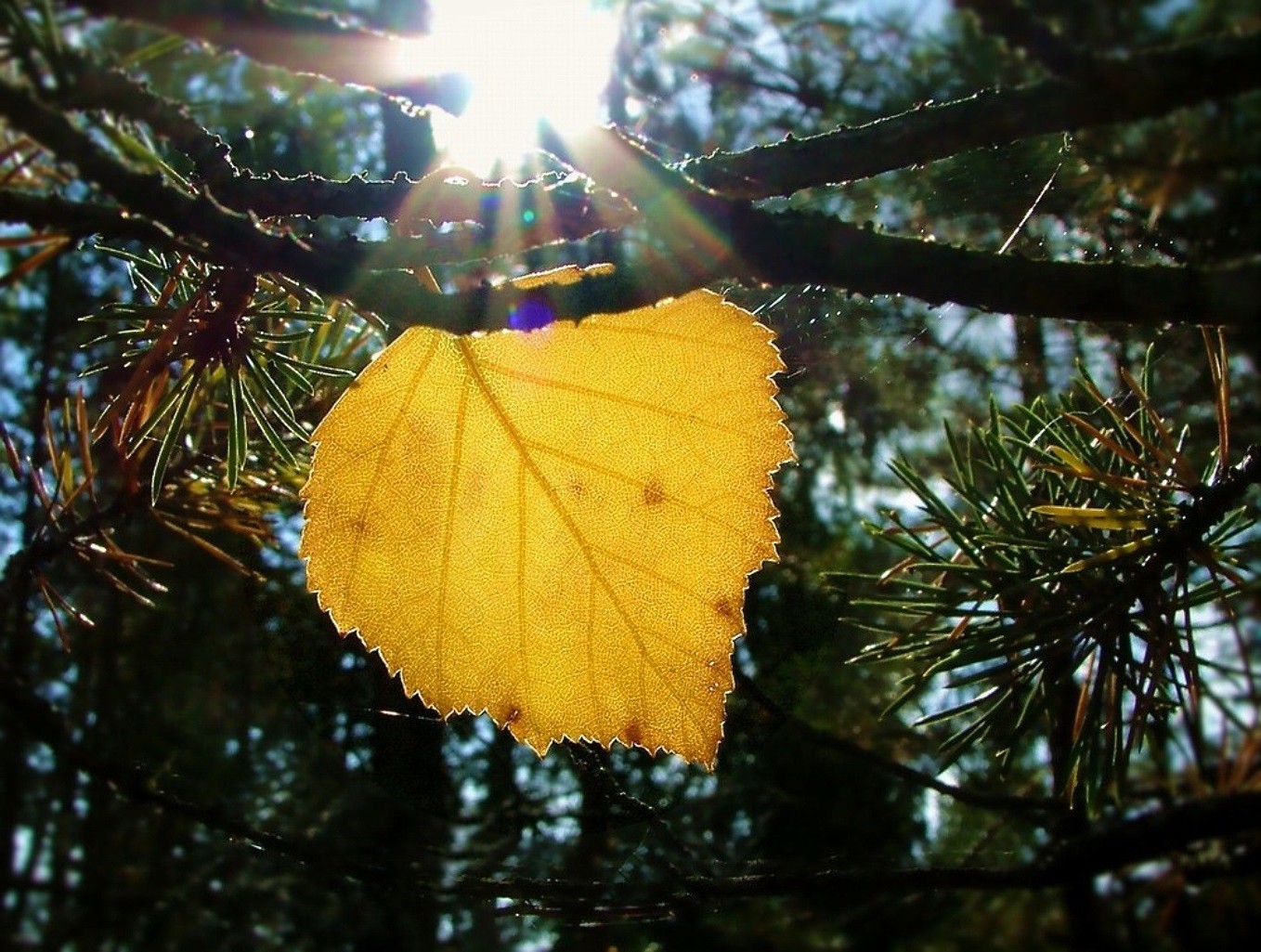 Birkenblatt durch die sonnenstrahlen