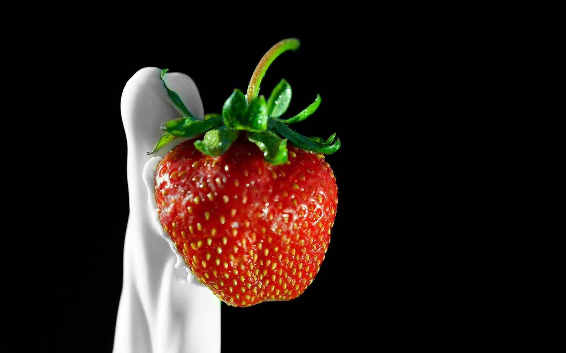 Erdbeeren in HD-Qualität Sahne auf dunklem Hintergrund