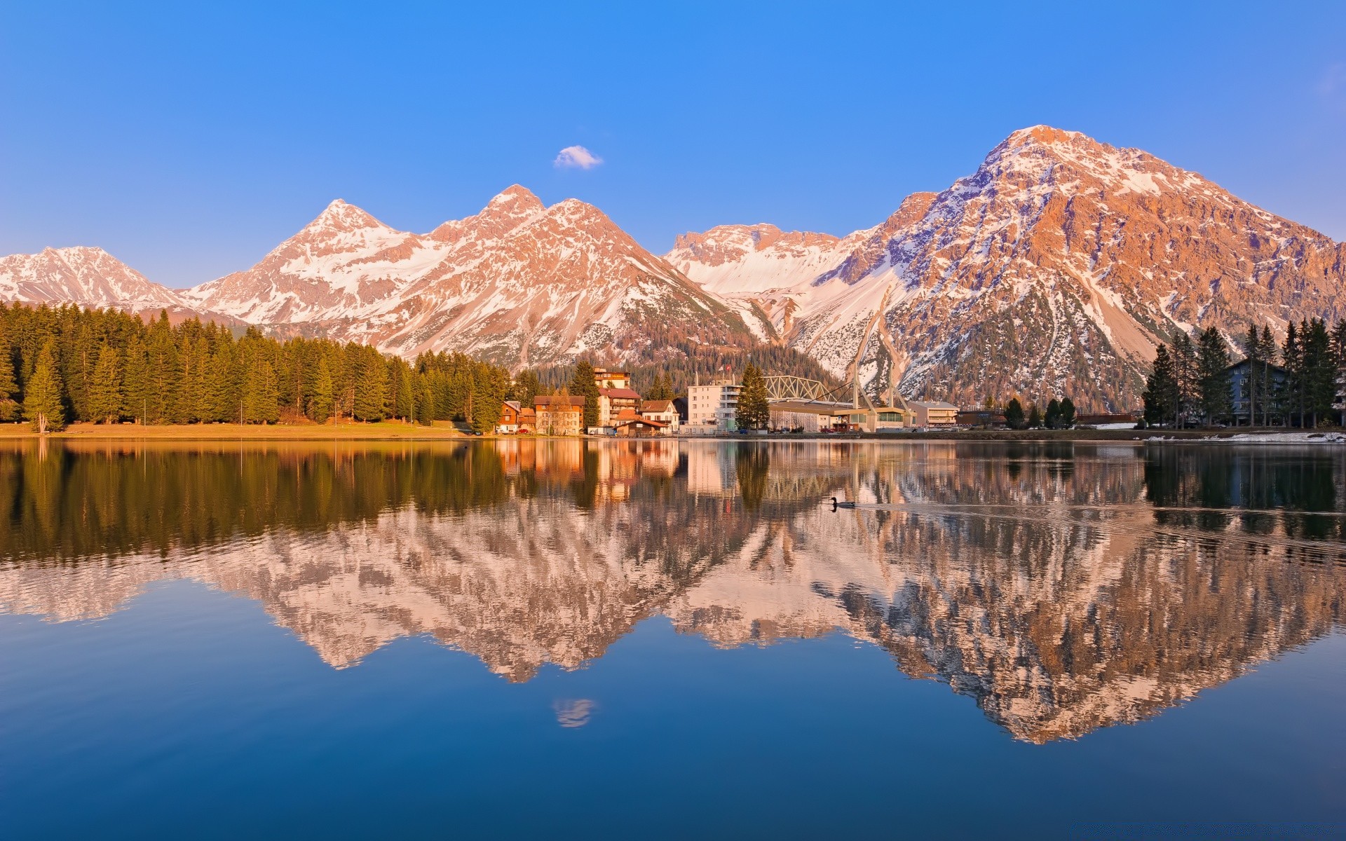 Schneebedeckte Berggipfel und See