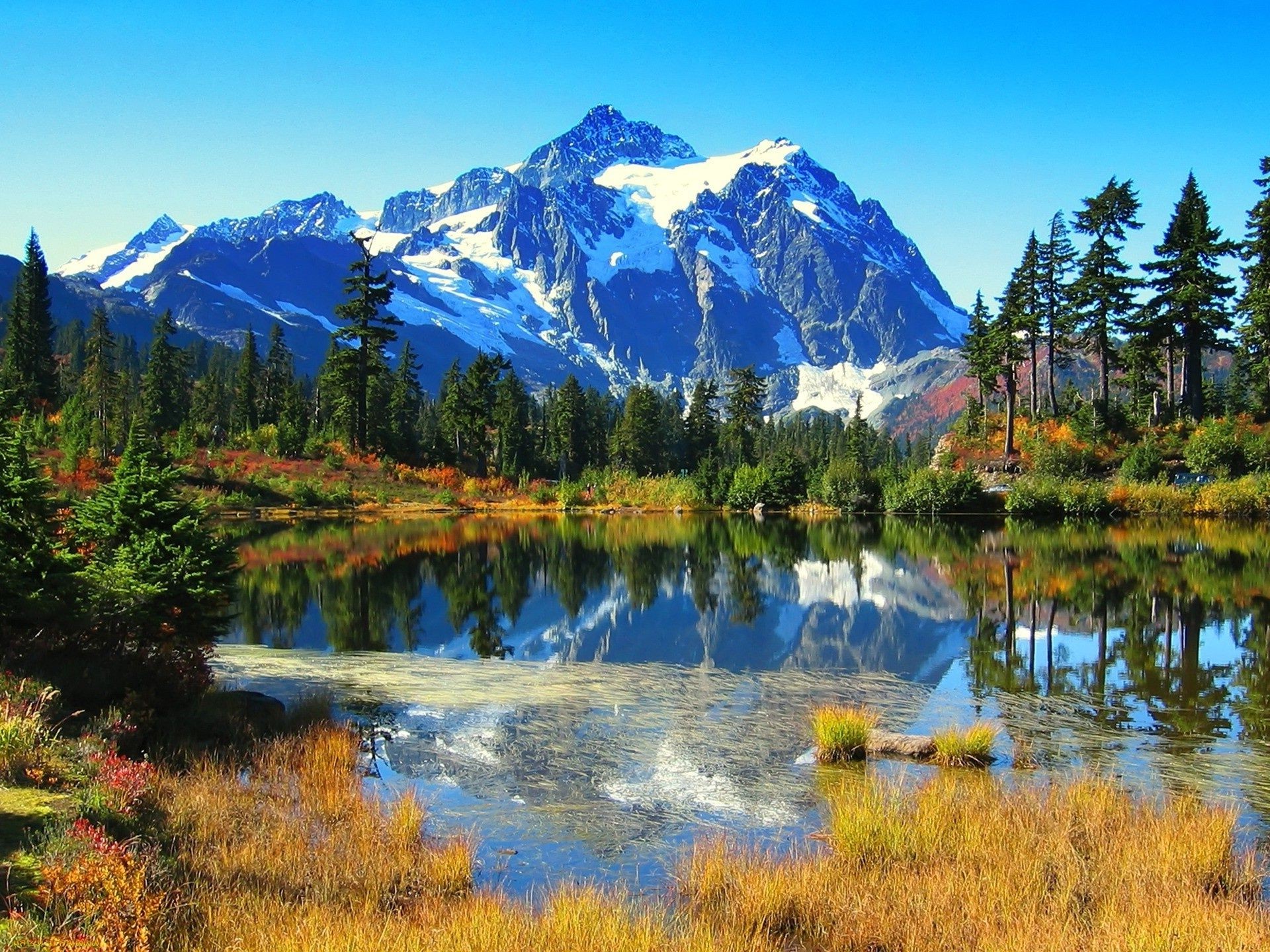 Berge in einer Herbstlandschaft mit Pinien