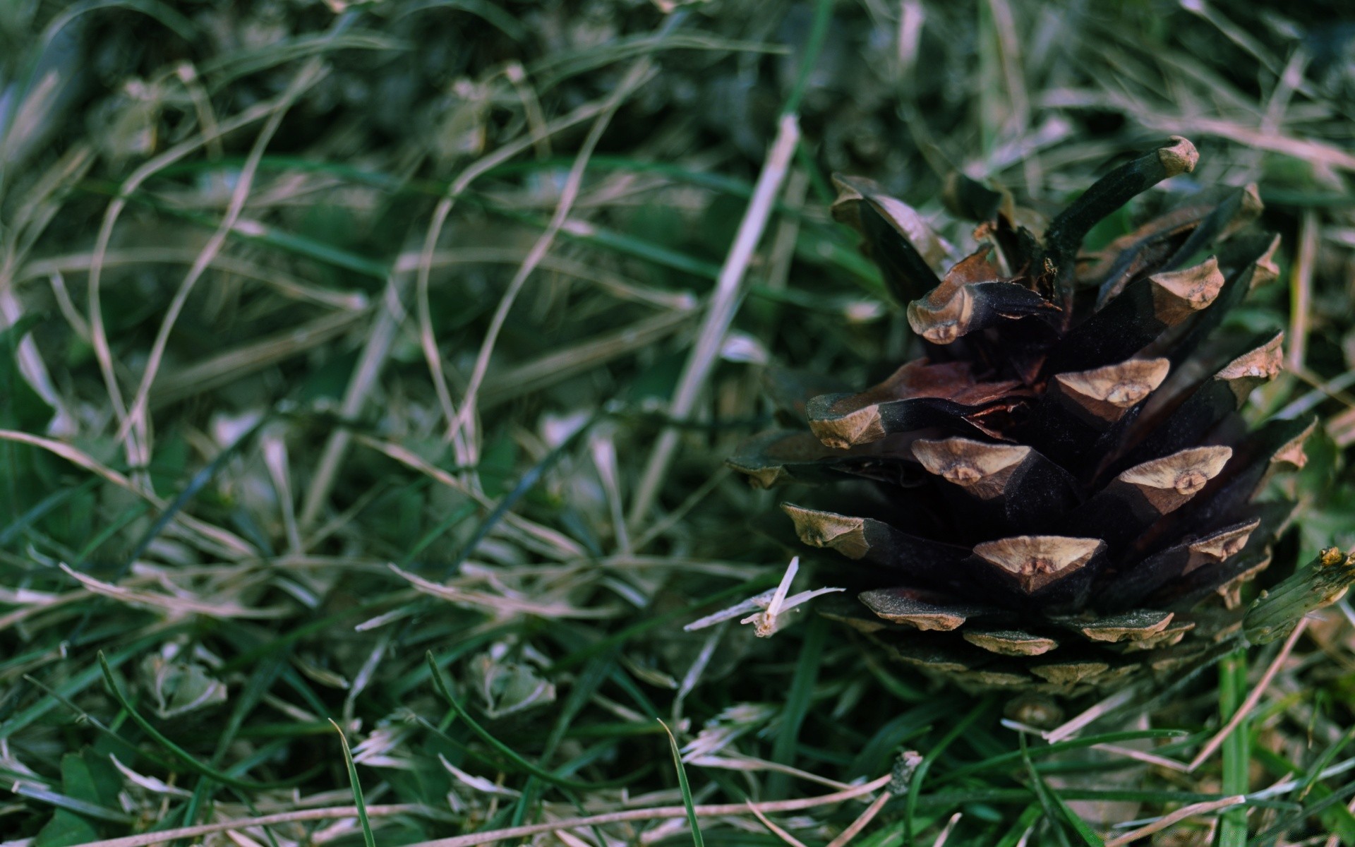 Die gereifte Zedernzapfe fiel wegen des Windes ab