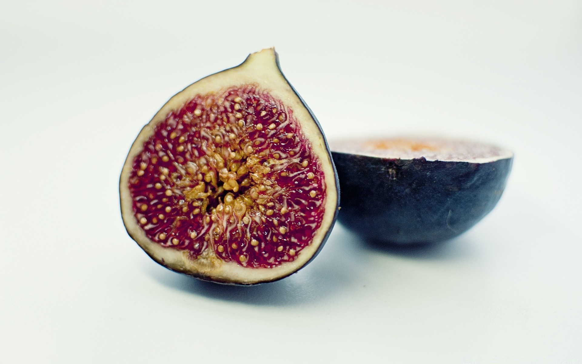 Geschnittene Frucht der blauen Feigen Farbfoto
