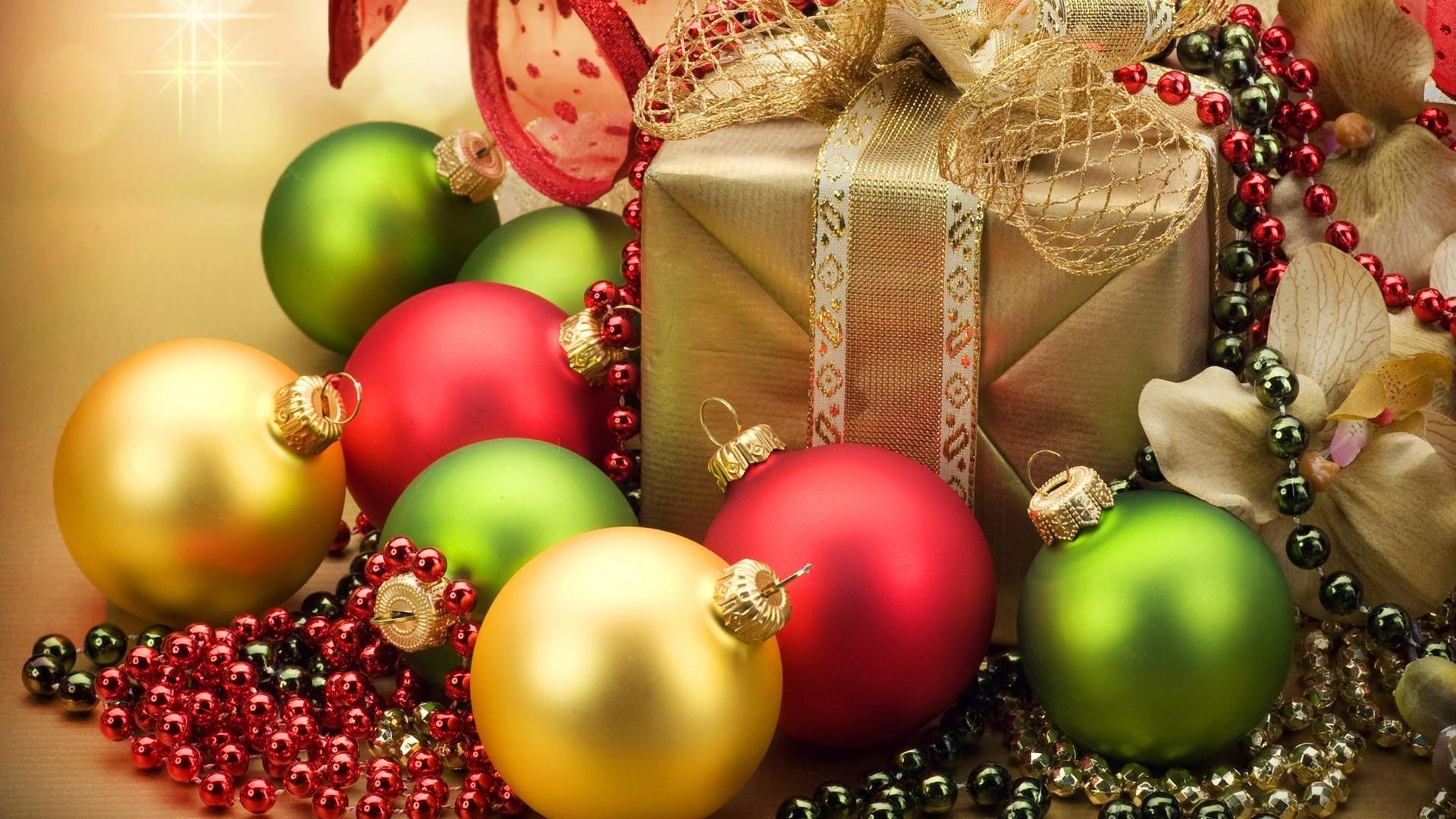 Farbige Weihnachtsbaumspielzeug beim Geschenk