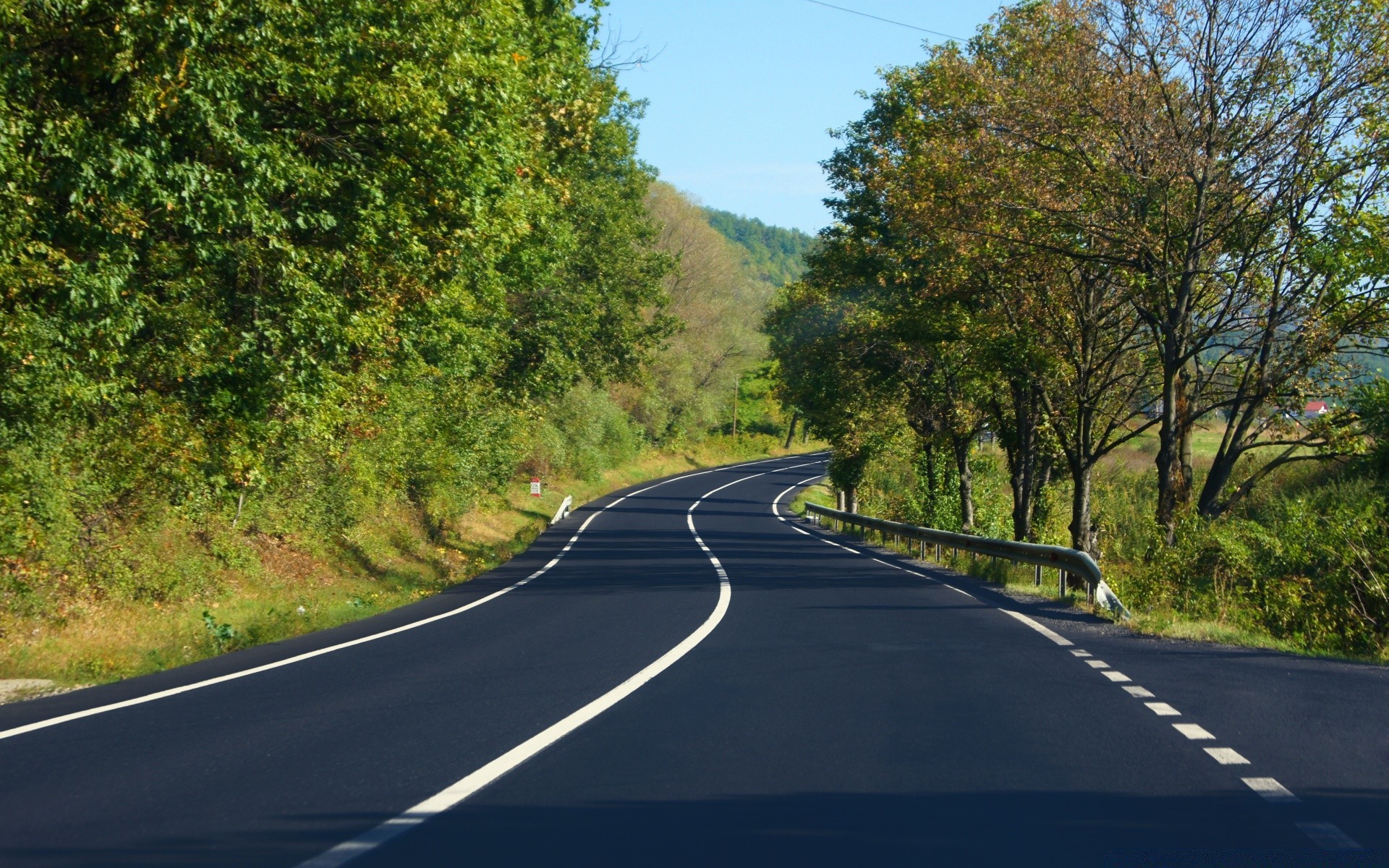Kurvenreiche Straße mit Markierung und rechts abbiegen