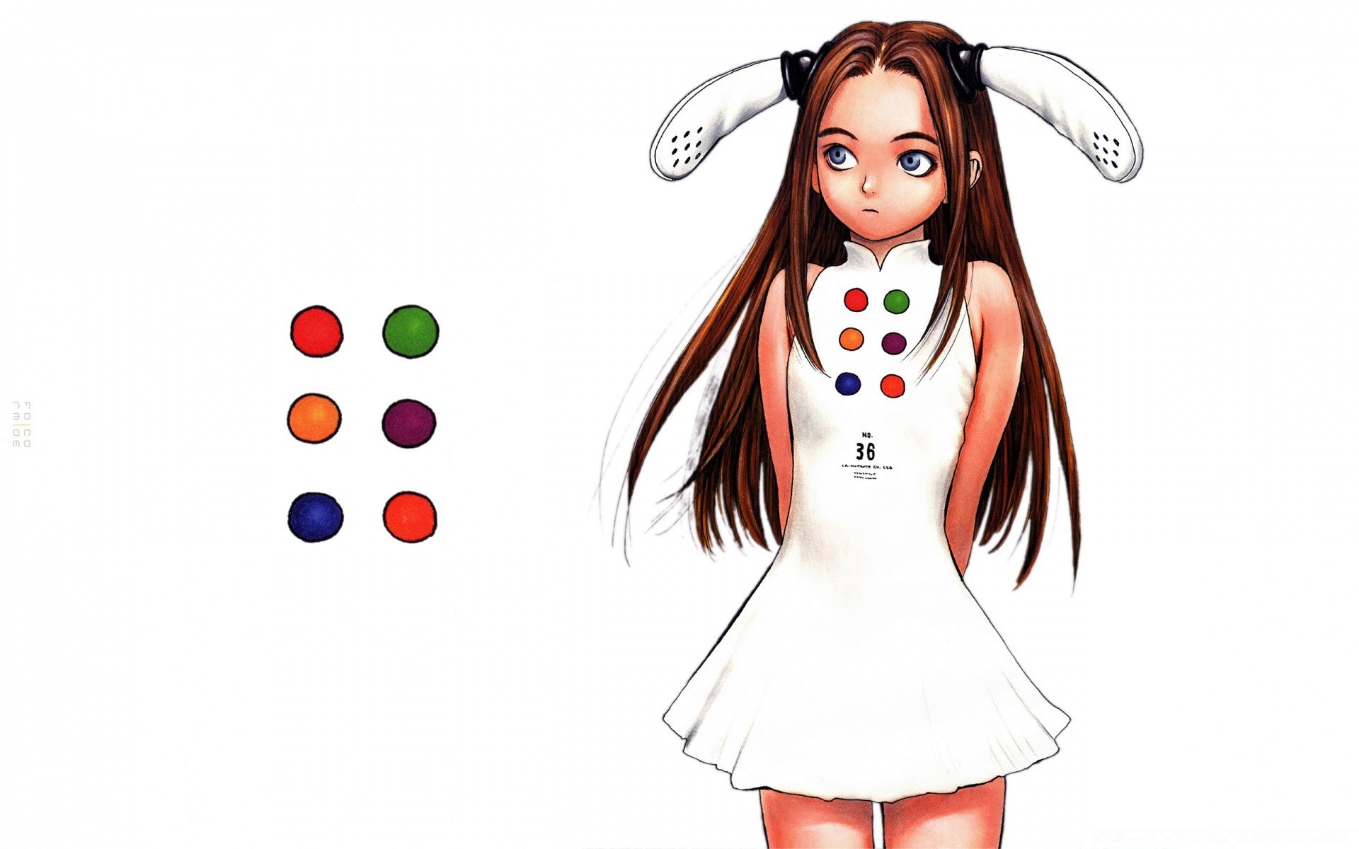 Anime. Mädchen in einem weißen Kleid mit weißen langen Ohren