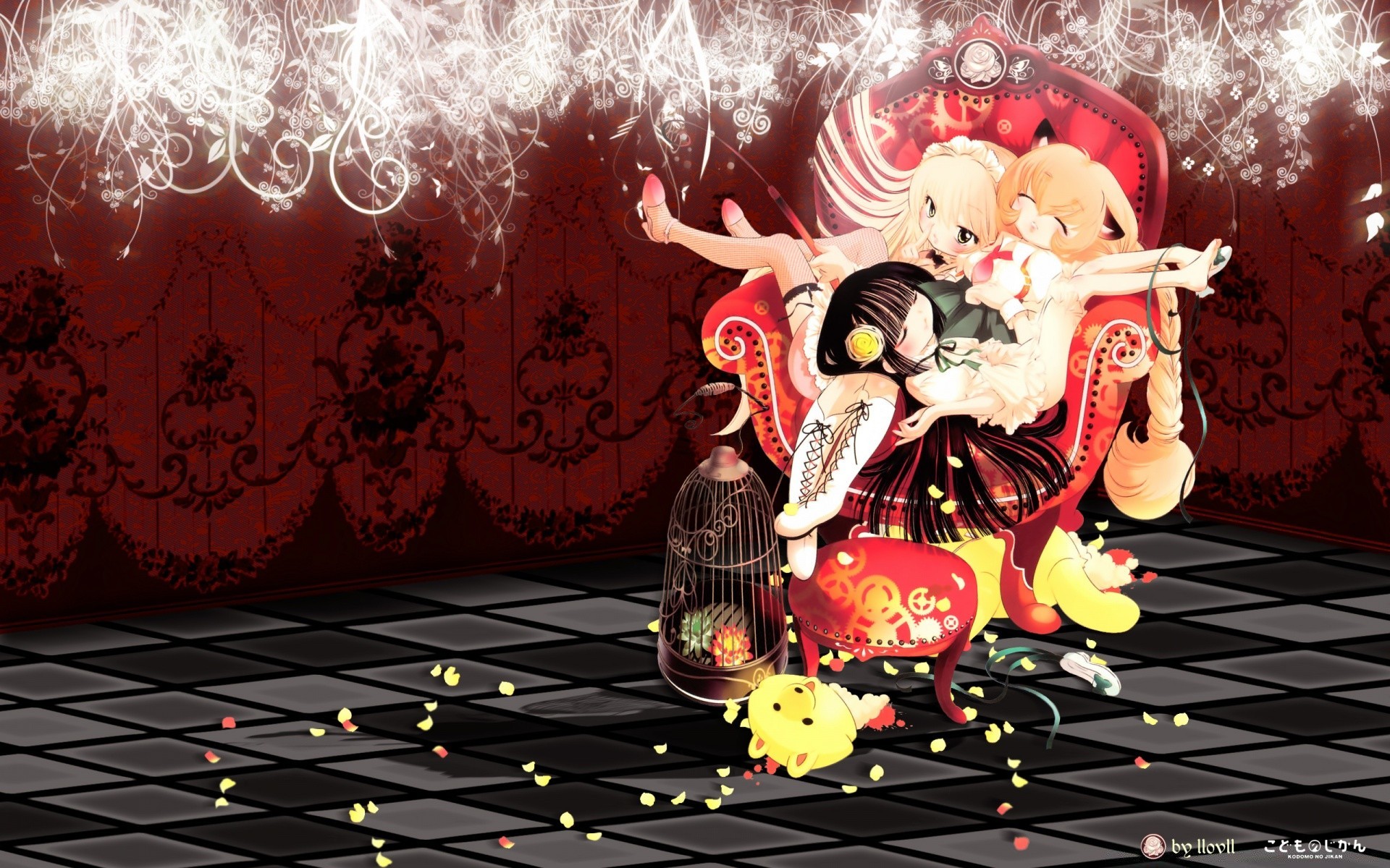 Anime Abbildung eines Mädchens auf einem Stuhl am Weihnachtsfeiertag