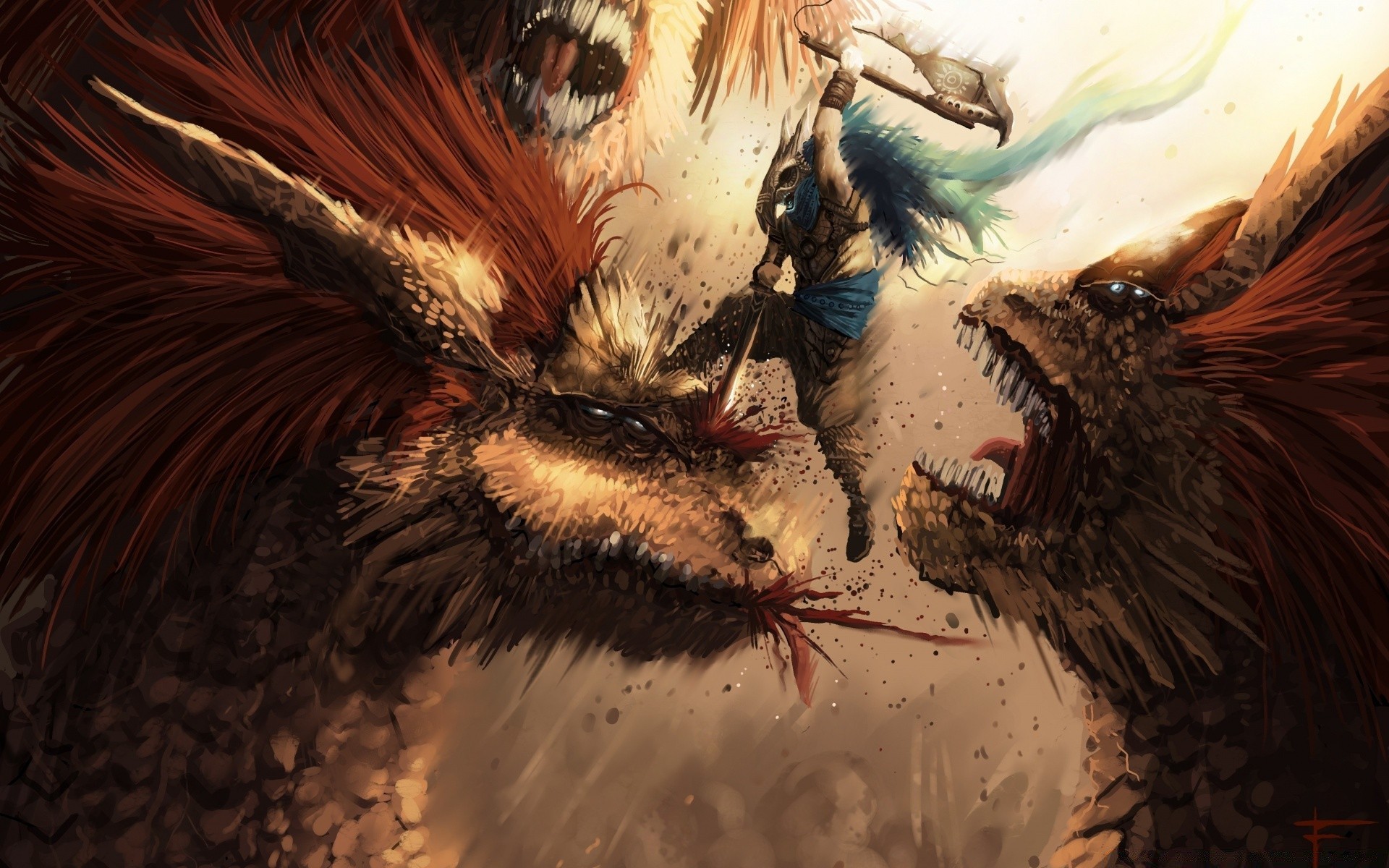 Erwachsene fantasy-Krieger auf rotem Hintergrund