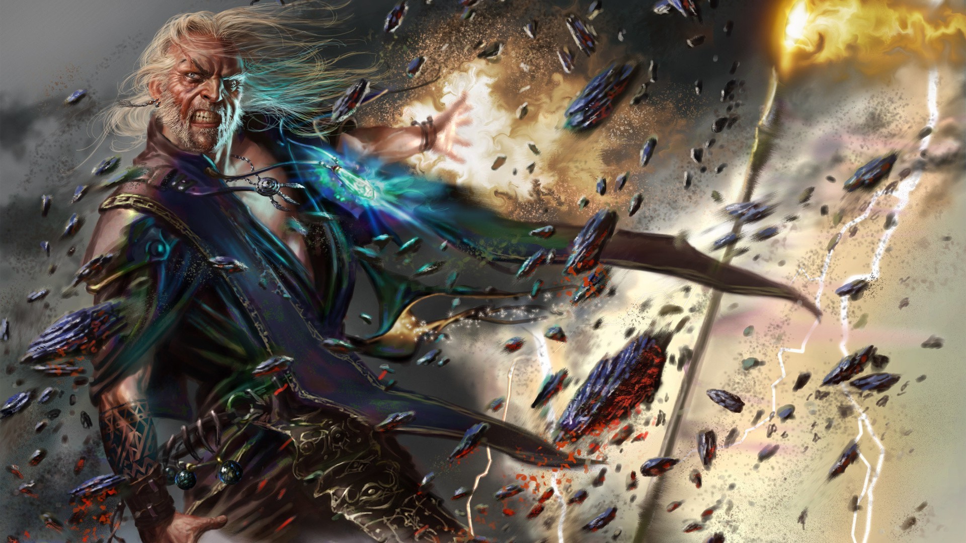 Ein Fantasy-Roboter, der sich auf einen Angriff vorbereitet