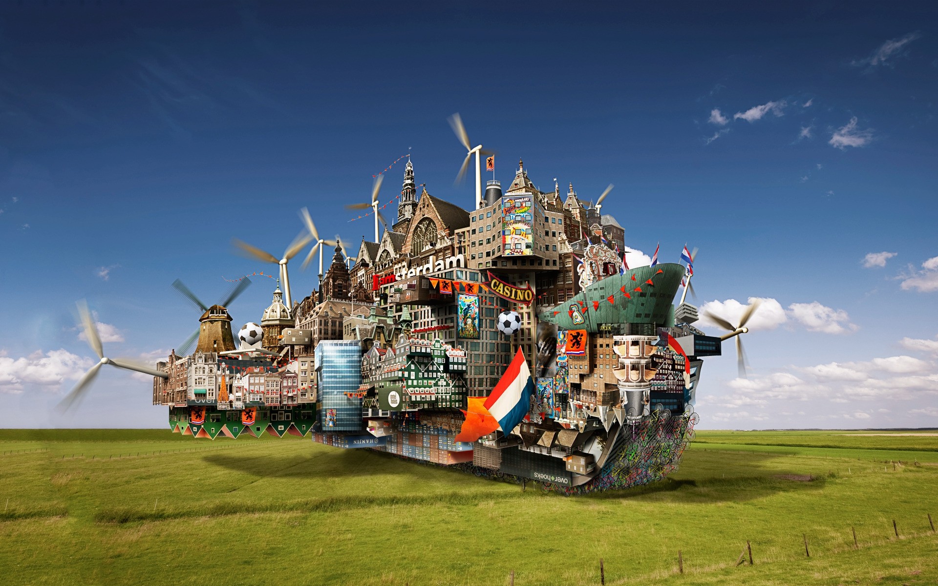 Fantasy-Stadt der Zukunft an einem klaren Tag