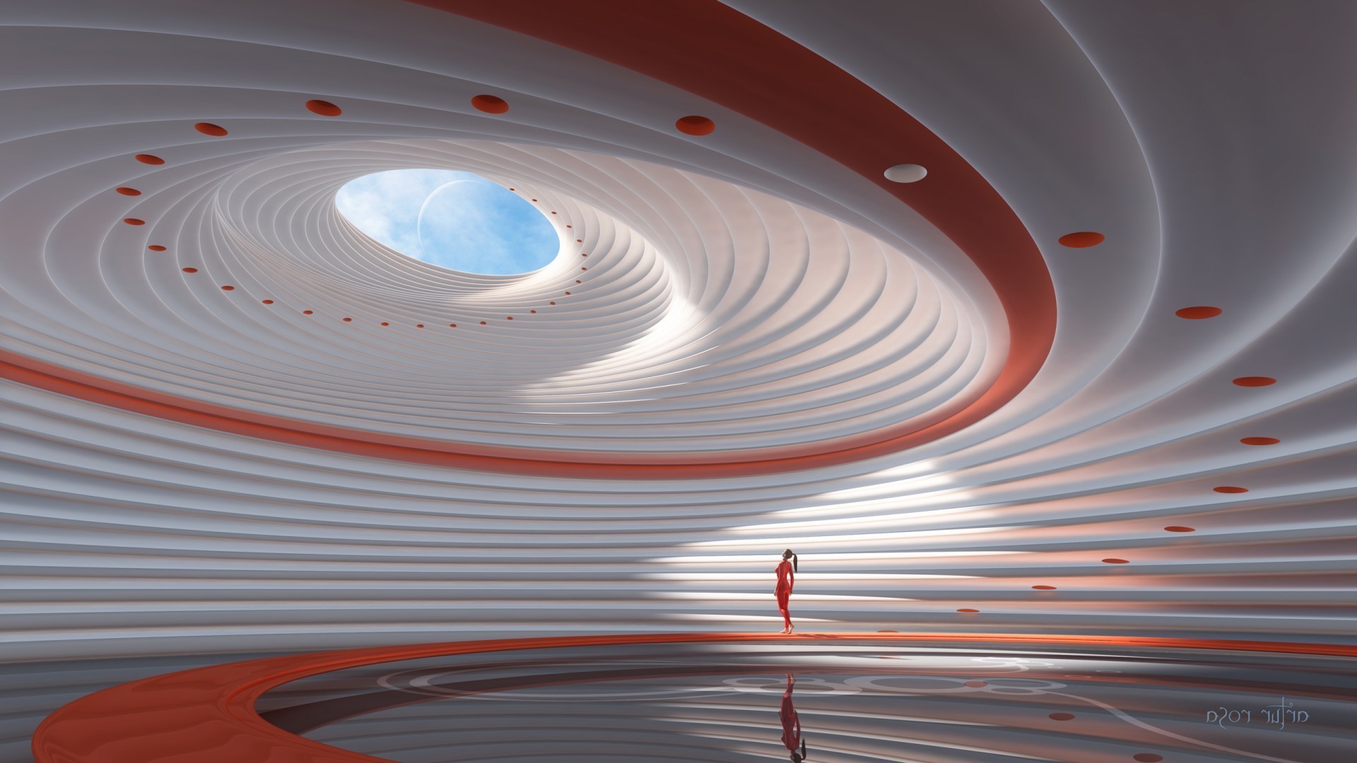 Fantastische Grafik des Raumes mit einem Fenster in der Decke, durch das der Himmel sichtbar ist