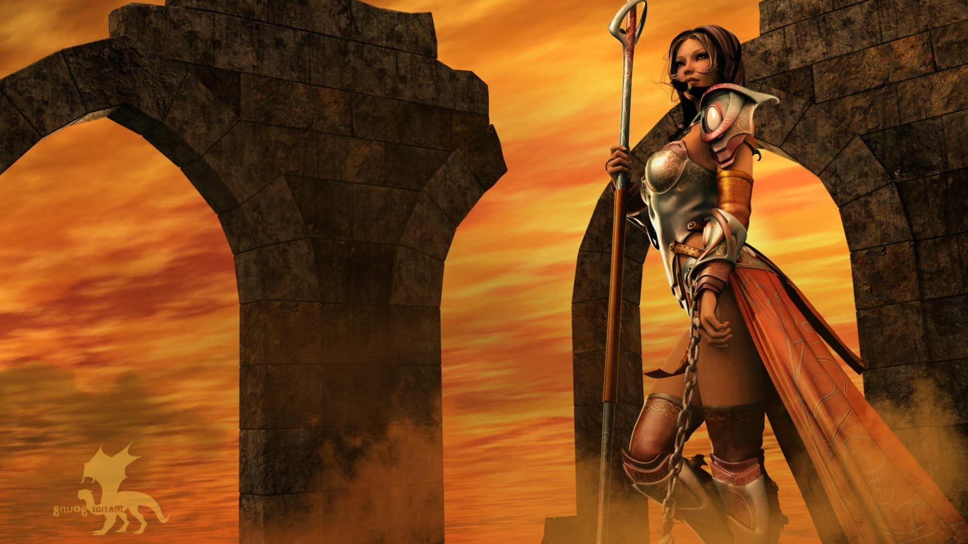 Ein Krieger-Mädchen mit silbernen Haaren kämpft mit einem Schwert in ihren Händen