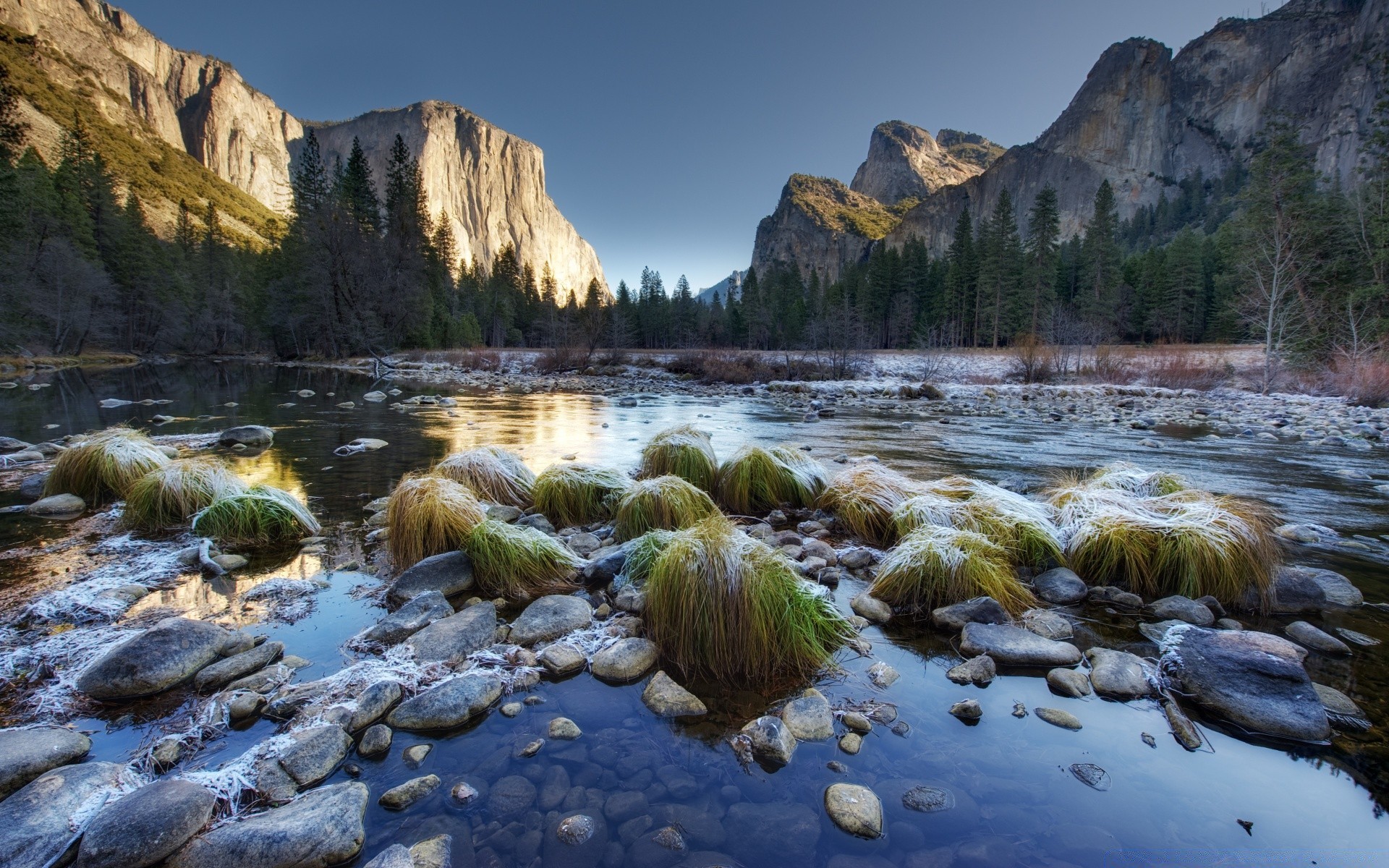 Die sanfte biegung des flusses zwischen wäldern und felsenDie sanfte Biegung des Flusses zwischen Wäldern und Felsen