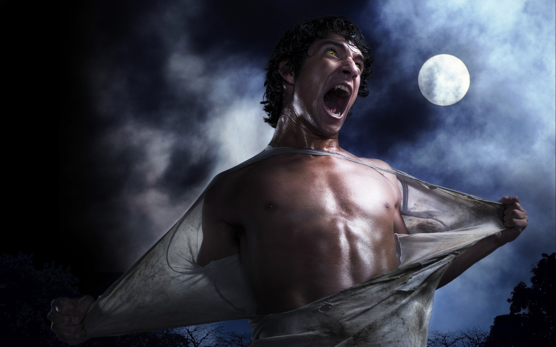 Mann reißt Kleidung vor dem Hintergrund des Mondes