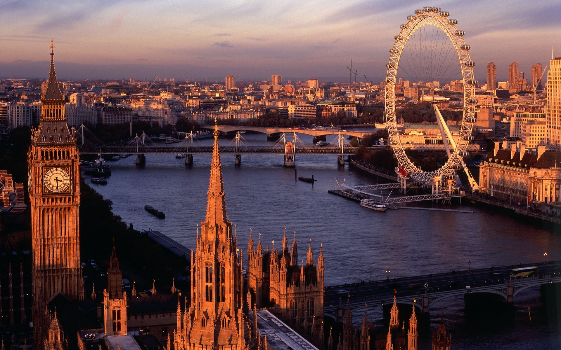 Ein düsterer Sonnenuntergang über einer leuchtenden Brücke